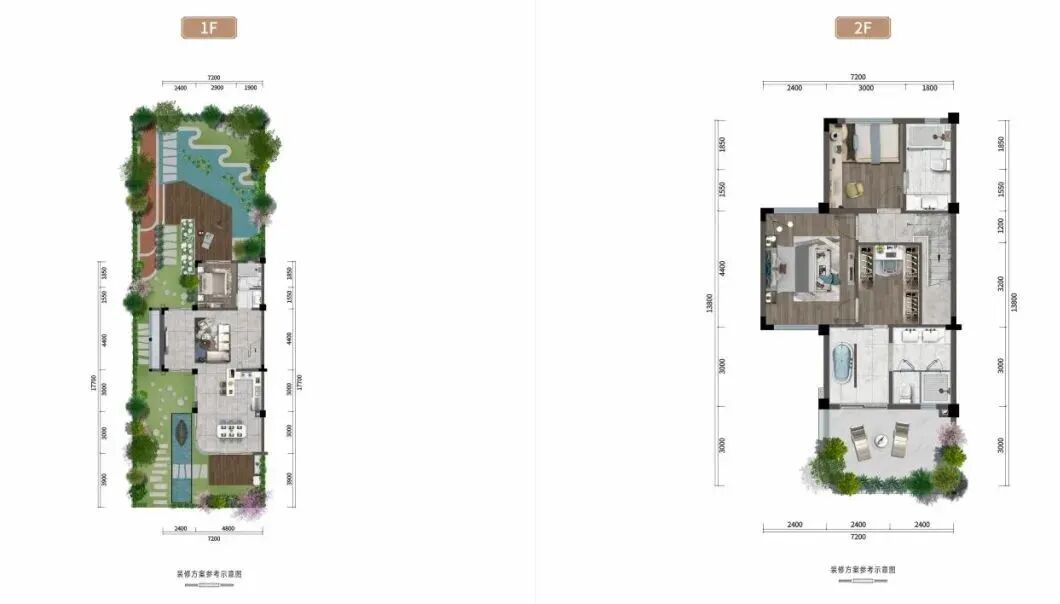 下叠136-138㎡户型拥有首层南北双花园及2F露台;