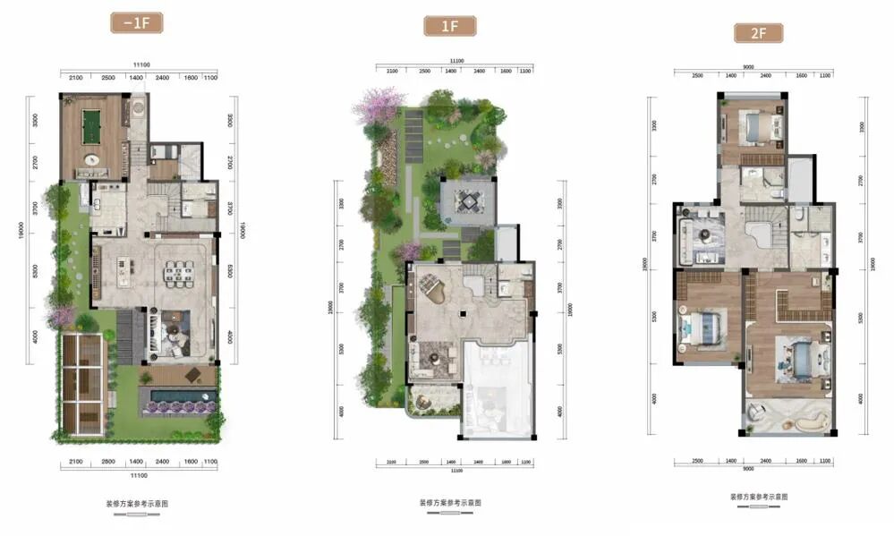 上叠320㎡户型拥有了屋顶空间、3F“跑道型”露台、地面入户花园及地下室......