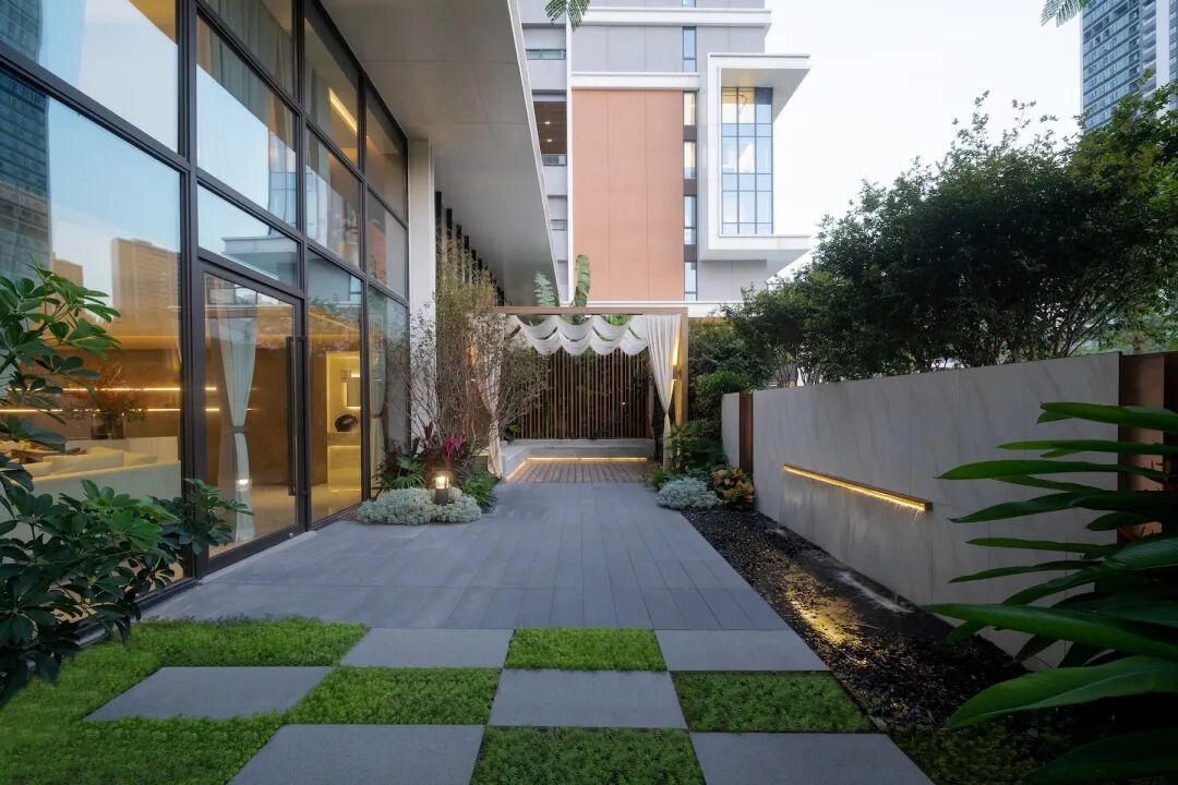 方寸之内的样板间庭院,通过精致的景观尺度与植物形态表达,让场地更加生动有趣。设计将建筑的体量、河流的气韵与生活的温度交融,感性而真切。