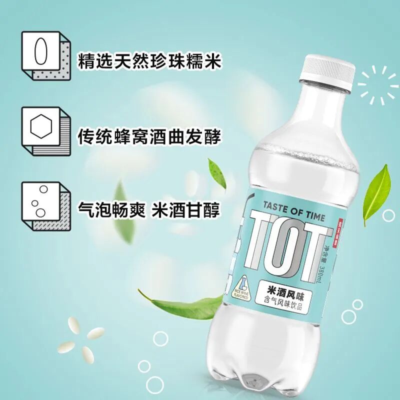 TOT米酒口味气泡饮以“米酒+气泡”的奇妙组合,强调“天然,纯净,无添加”。农夫山泉早在2005年就开始布局碳酸饮料市场,据公开数据统计,TOT气泡饮已经是品牌继“农夫汽茶”、“TOT苏打红茶”、“泡泡茶”,以及碳酸咖啡“炭仌”之后的第五次尝试。