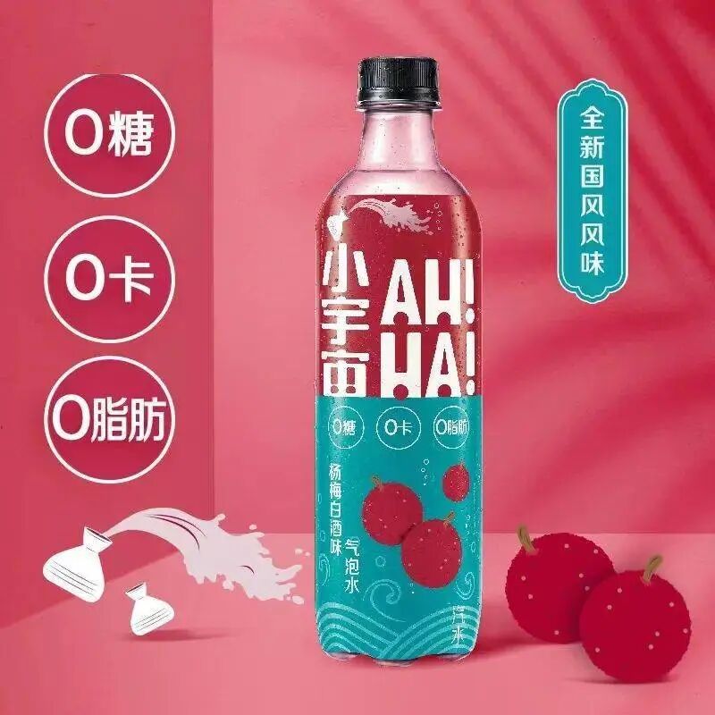 不久前可口可乐旗下品牌小宇宙AH!一HA!发布了一款杨梅白酒味气泡水。小宇宙AH!一HA!作为可口可乐对标元气森林气泡水的子品牌,与元家“0糖0卡0脂肪“的卖点正面刚,并首次打出“国风风味”概念,巨头企业的“营销汉化”功力可见一斑。