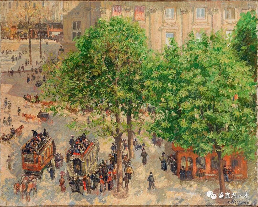 1870 年,他去了伦敦逃避战火。后回国,他的作品就和印象派画家紧紧扣在一起。与其他印象派画家一样,他的作品同样受日本艺术所影响。他以明亮的色彩和颤动的笔触来表现当代的风景。怀着强烈的好奇心,毕沙罗还不断探索新的技法。1885 至1890 年间,他跟随了画家秀拉(Georges-Pierre Seurat)以点描法(Pointillism)绘画,但后来又重拾原来的技巧。1892 年,画商杜朗 — 卢埃尔为他举办了大型回顾展。此后,毕沙罗潜心描绘城市景致,尤其喜欢以俯瞰的角度捕捉巴黎的街景,把焦点集中在熙熙攘攘的大街小巷上,而这类作品终为他赢得国际声誉。