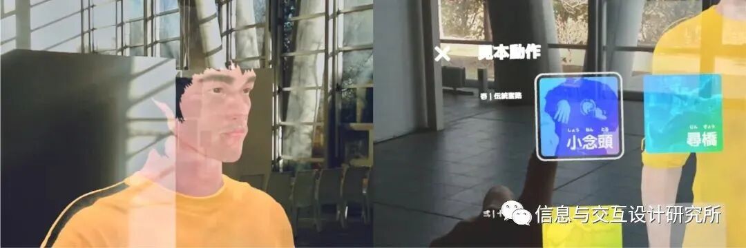 设计者意识到在冠状病毒流行,人们的活动受到限制的情况下,很多信息仅靠单纯的影像是无法传达的。以此为契机,以咏春拳的实践为例,尝试了MR技术信息创新的可能性,研究了MR用户的体验。在这样的背景下,设计者设计了MR应用程序“功夫”,让用户可以学习到虚拟功夫大师的武术知识,学习武术动作,并与虚拟的同伴一起练习武术。