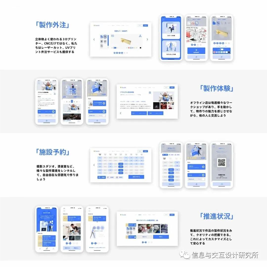 该研究明确了主要面向日本制造客户的设计实例和服务流程。具体来说,明确了基于制作预约系统(App和Web设计)和工作坊体验设计的用户界面和用户体验的设计过程。