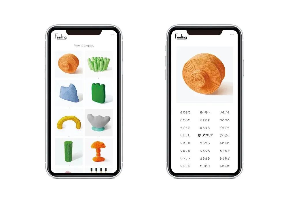 触摸的感觉因被触摸的对象而异,而日常生活中随便触摸的每一种东西,触摸的感觉都略有不同。并且感觉会根据触摸它的人而改变。感性没有正确答案,取决于自身感受,而这可能是感官看不见的东西。宫内的作品表达的就是一种体验,用文字:象声词来表达触摸时的触感,并与他人分享这种触感。