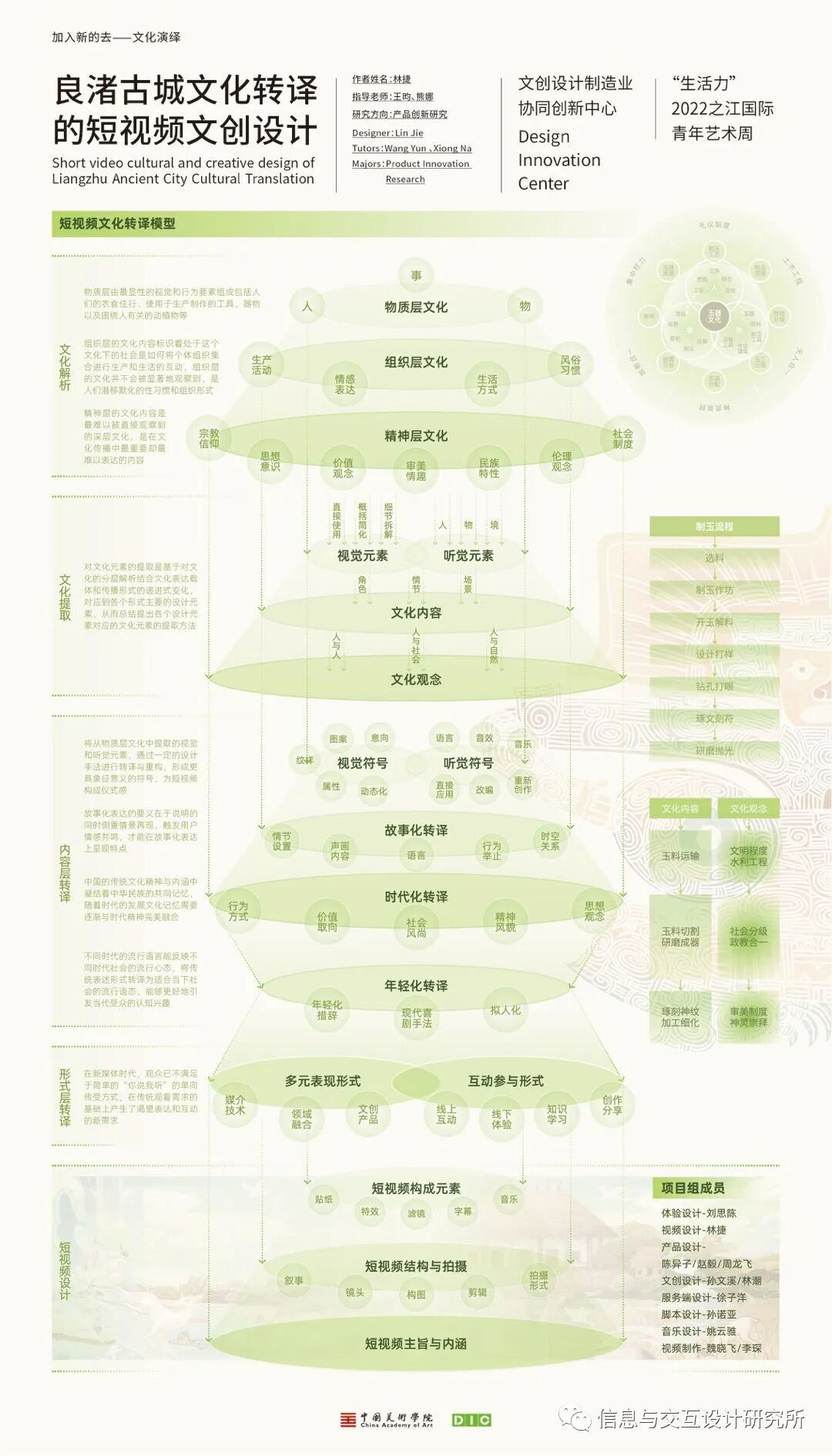 本设计围绕良渚文化内容如何通过景区短视频以及生成服务进行表达和传播这一问题进行,将文化转译模型引入短视频设计,并将短视频作为一种数字文创产品。