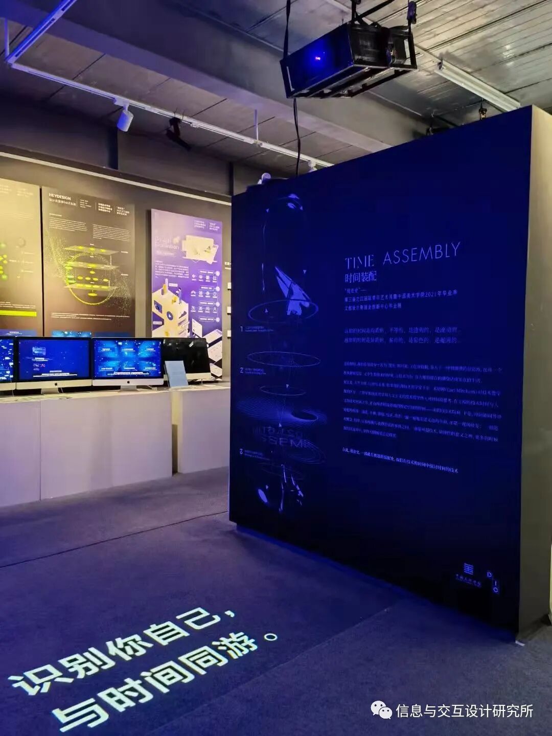 B1-「时间装配旅程」(JoumnevofTIME ASSEMBLY)是基于2021年第三届之江国际青年艺术周中国美术学院DIC毕业展主题[时间装配」(TIME ASSEMBLY)的定点打卡和生成式投影的视觉交互体验设计,含观众1)在场共同创作克莱因洄游的粒子墙「识别你自己,与时间同游」,2)离场生成的基干打上时间参数生成的利萨如动态图形和基于打卡点数的莎士比亚Sonnet65意向观展牙份等信息的个人观展信页。