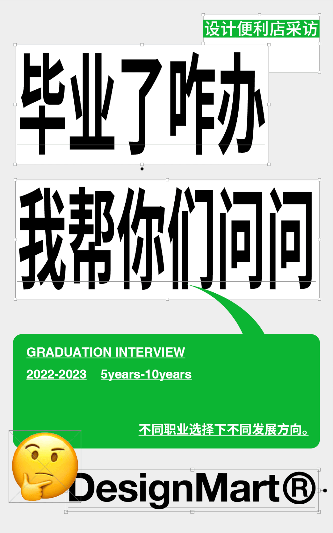 高中和大学的整段时光,虽然没能真正进入专业科班学习,但也为了自己的兴趣阅读大量设计类相关书籍、自学设计软件、尝试转艺术类专业、以文案身份进入设计工作室等等。之所以回顾这么多,想说明的是不管外部因素如何不利和掣肘,热爱永远是支撑我在任何时期做出选择的内在动力。