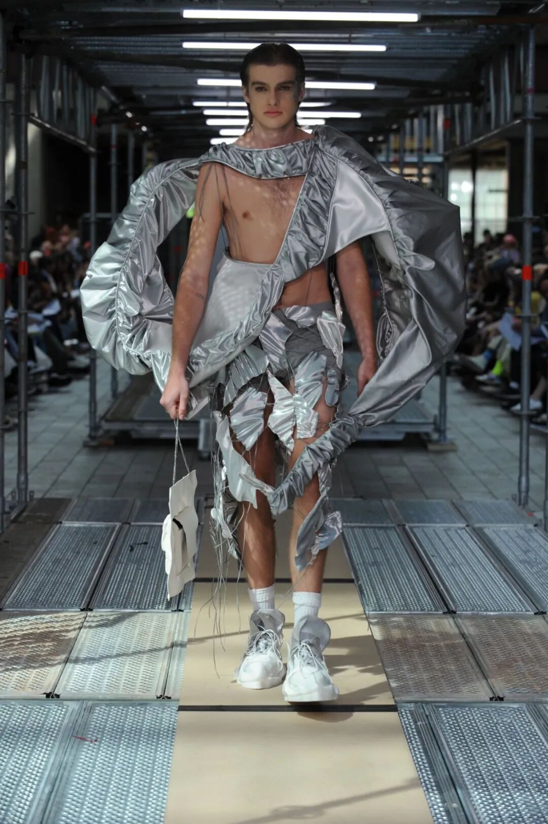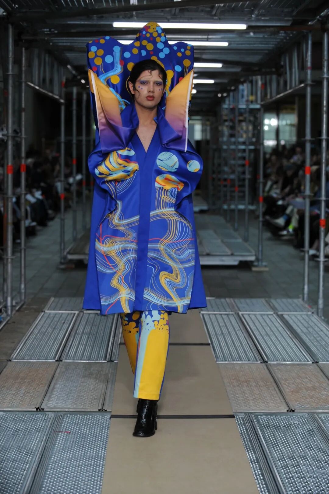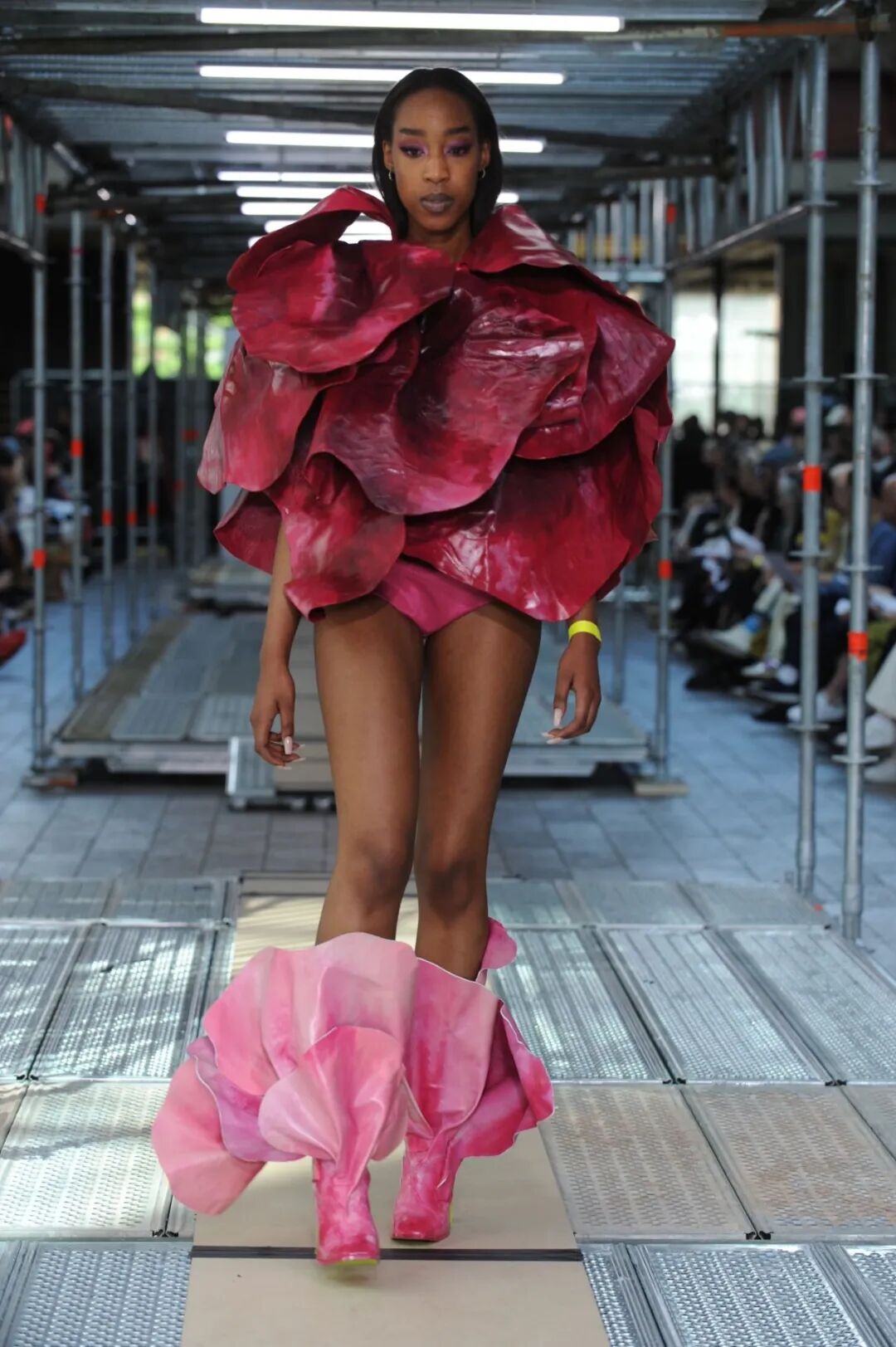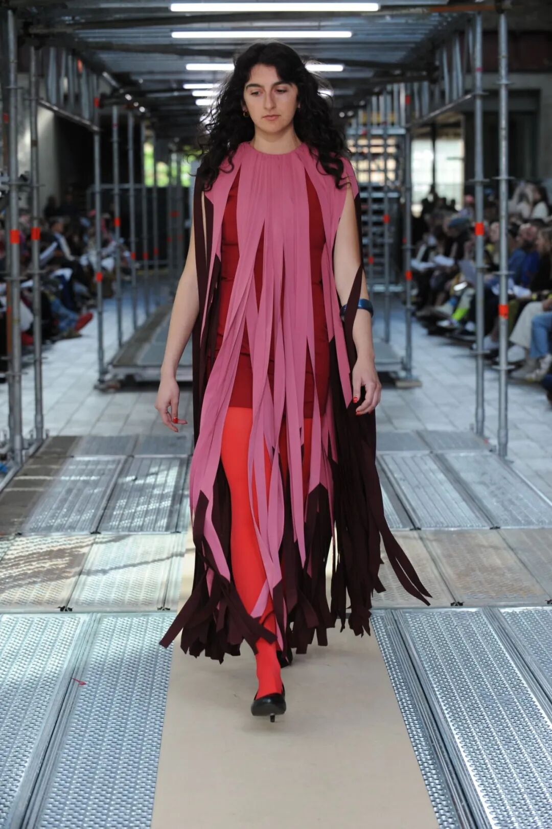 2022年5月24日的晚上,中央圣马丁时装课程的所有115名学生用两层楼的上下两道runway来展示了他们毕业设计中的三套look。