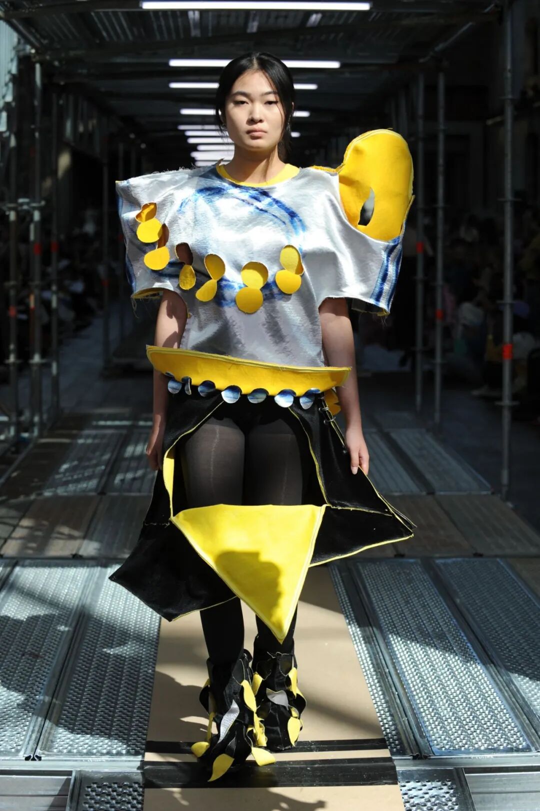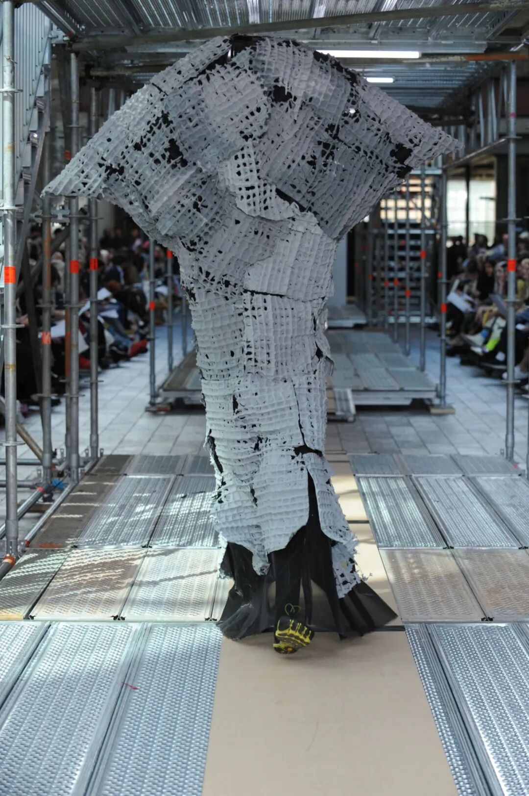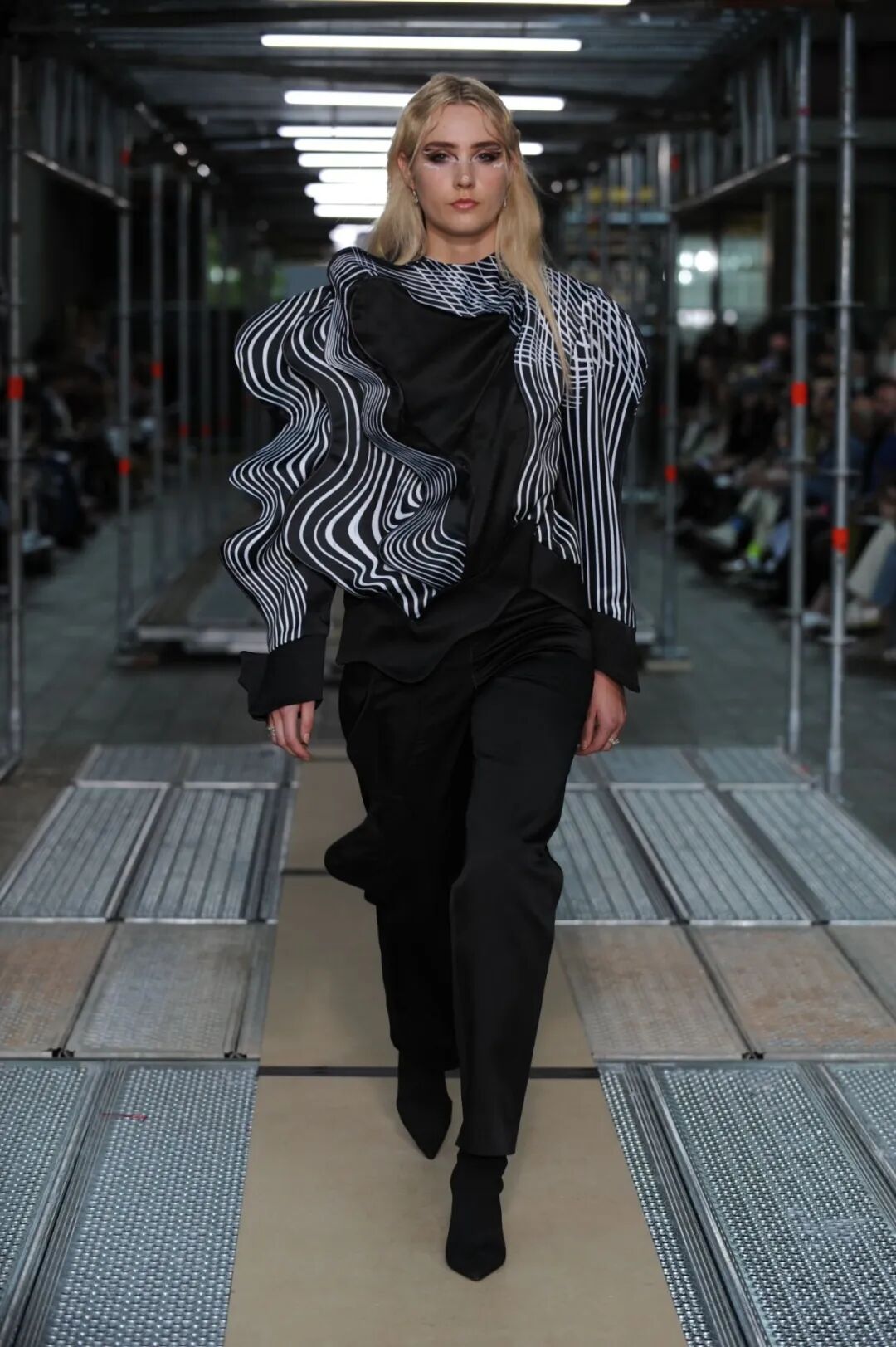 2022年5月24日的晚上,中央圣马丁时装课程的所有115名学生用两层楼的上下两道runway来展示了他们毕业设计中的三套look。