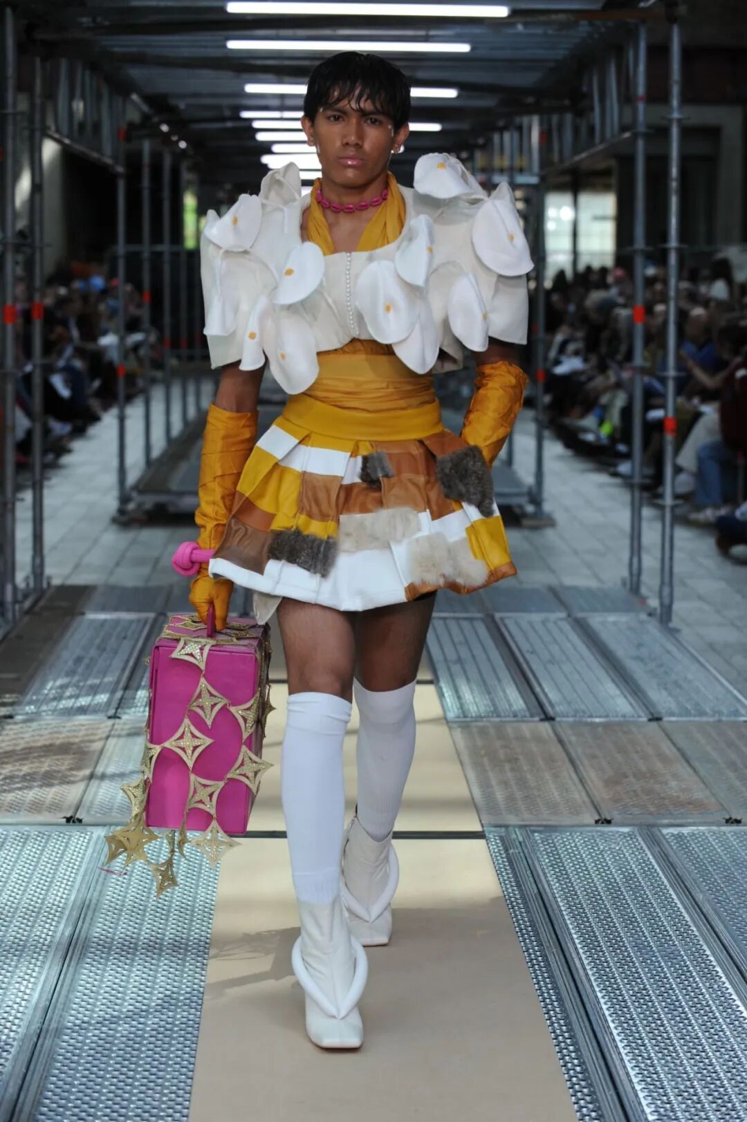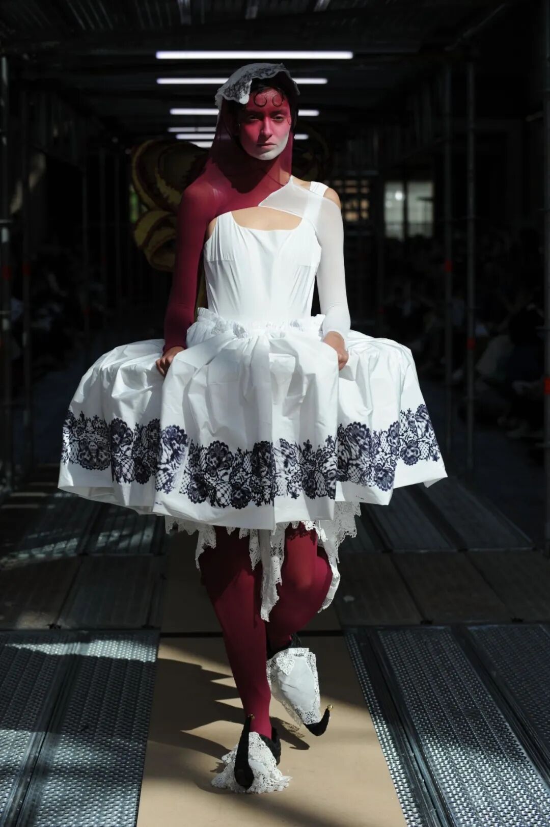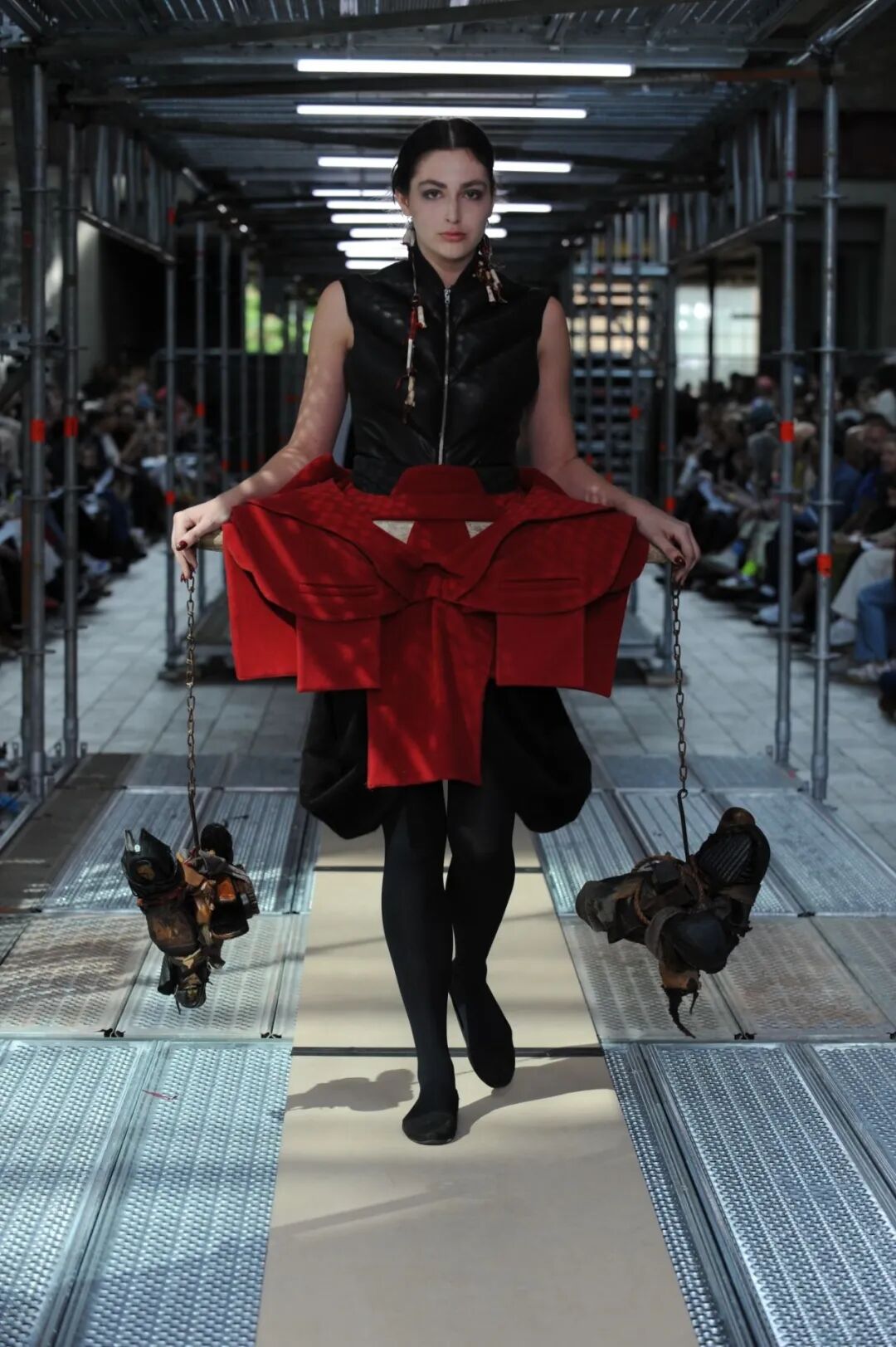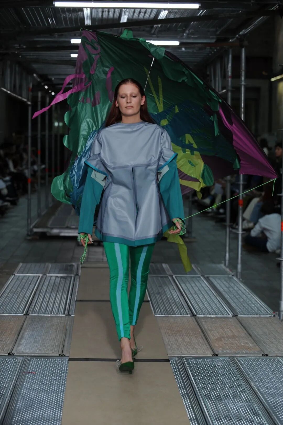 2022年5月24日的晚上,中央圣马丁时装课程的所有115名学生用两层楼的上下两道runway来展示了他们毕业设计中的三套look。