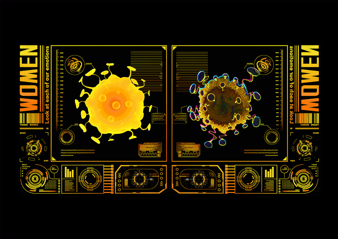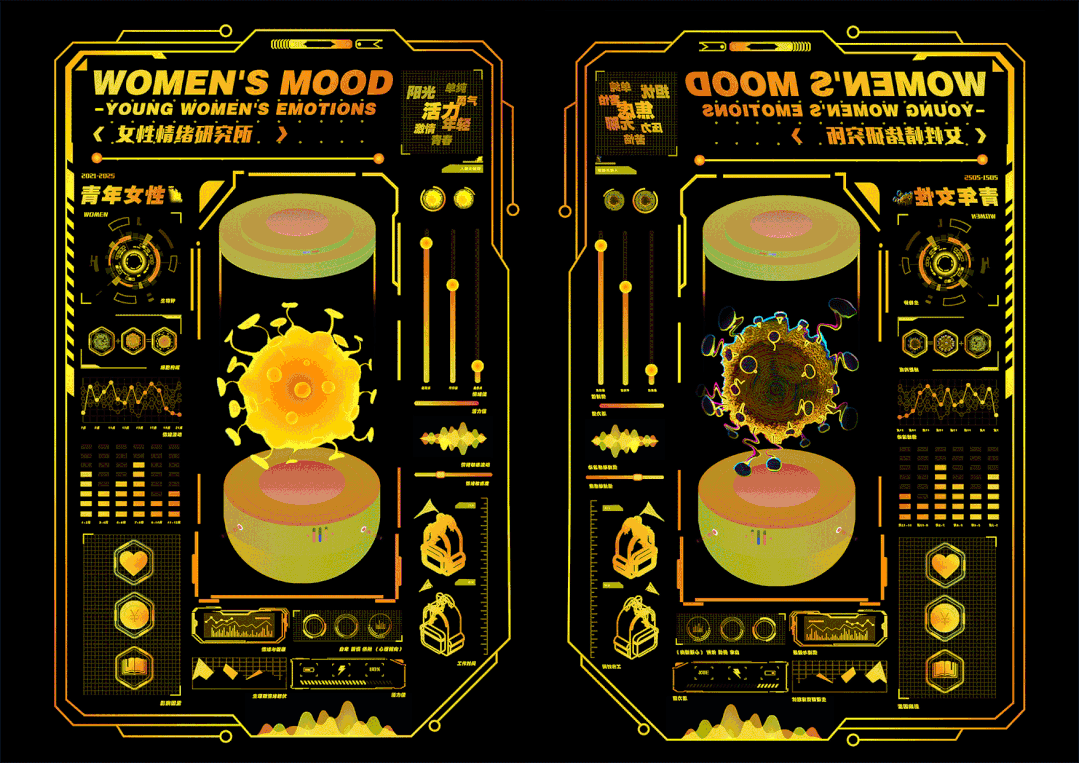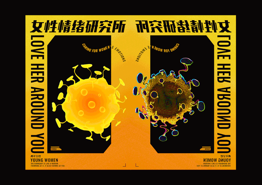 设计说明:情绪是人的视觉化符号,根据不同环境或心境,有时高兴、有时愤怒、有时悲伤。该设计试图以细胞为载体,在内在、外在、隐性、显性的情绪变化中,展现细胞的不同视觉特征,以此实现视觉化符号与设计主题的共鸣,呼吁人们对女性情绪问题的关注。