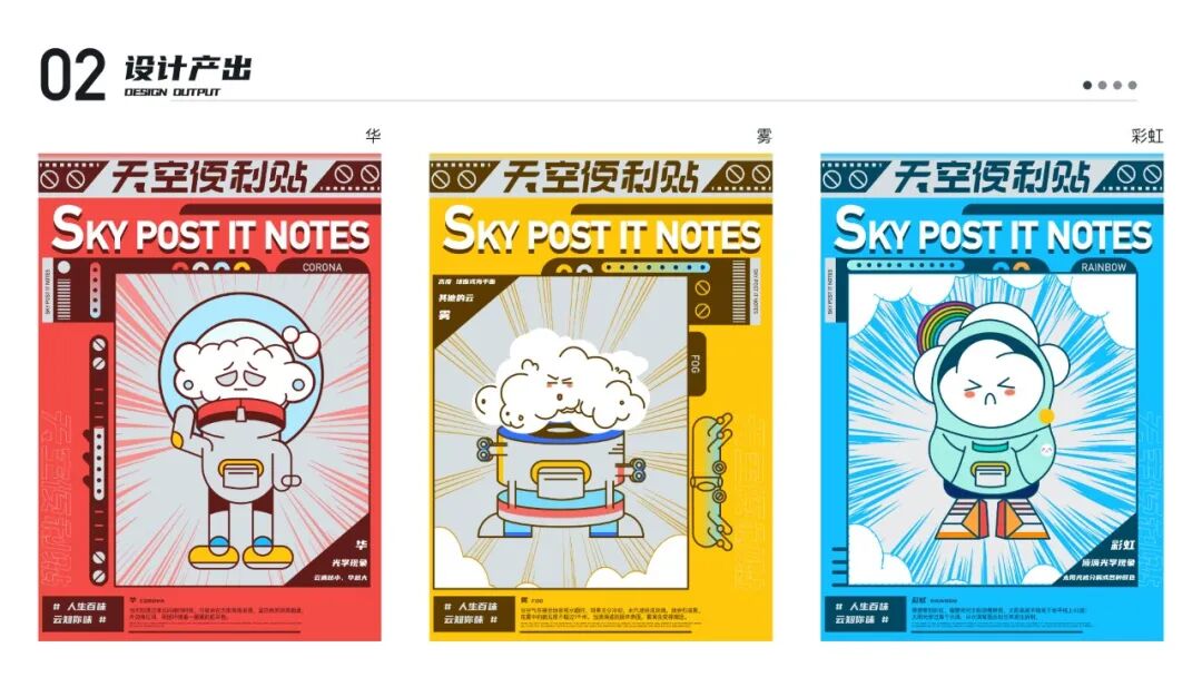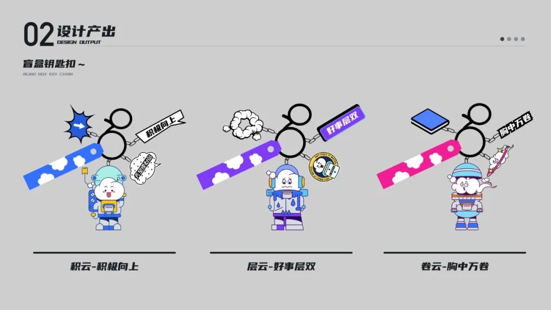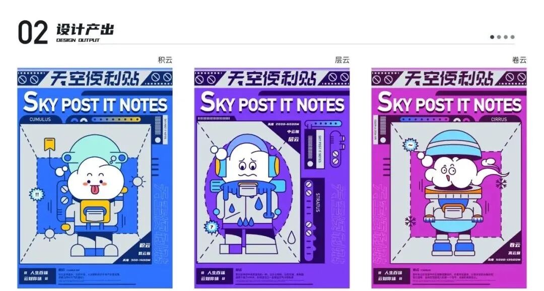 设计说明:天空中的云是宽广的、是包容的,每个人会经历很多事,有好有坏,每段经历就像天空中的云一样,每一朵都不一样,却又一样。云是天空的便利贴,它记录着天空的故事,而你的呢?我希望通过此次概念品牌设计,将云以潮玩周边的形式,在角色形象上,柔软、可爱的造型在带给人无攻击感的同时强调着陪伴的意义。