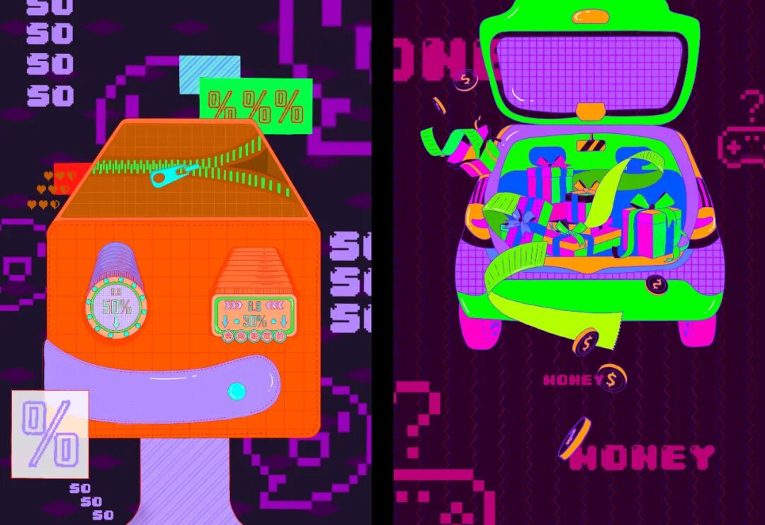 设计说明:由于社会的进步和经济的发展,人们的消费观念发生了巨大变化,与此同时,一些不理性的消费现象也频繁出现。特别是当今在商业化的驱动下,各种节日都摇身一变成为了“促销节”,诱使人们疯狂购物。很多人在一次次的节日购物狂欢中由于冲动消费而负债累累,沦为“负翁”。该设计希望通过有趣的视觉形式表现“负翁”的购物现状,提醒人们反思自己的消费行为,形成良好的购物习惯。