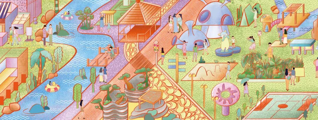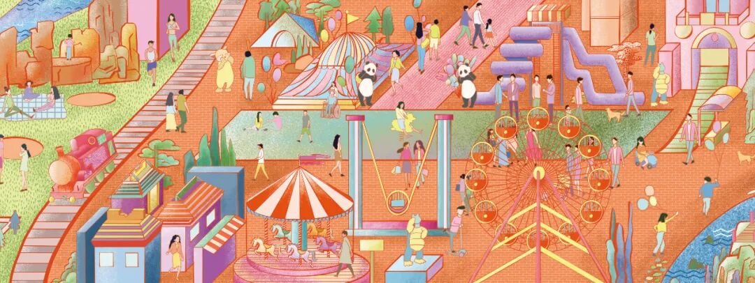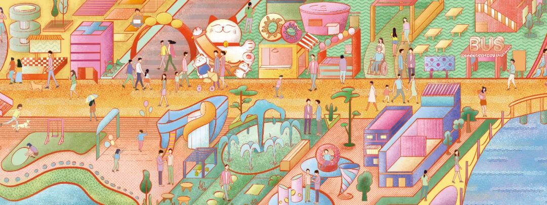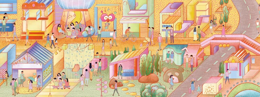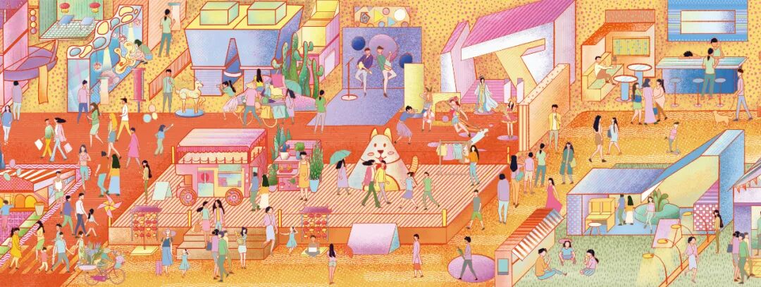 设计说明:我们都是时代的同行者,随着社会的发展,我们已经进入了新时代,新时代有新的风俗文化。这些年,我国居民的娱乐活动,生活习惯正在发生变化,一些新的理念和风尚正在产生和培养。以此为创作背景,设计灵感来源于北宋风俗画《清明上河图》,作品旨在描绘新时代的精神文化和社会环境,展现新时代的社会新风俗、新文化,弘扬社会正能量,体现时代新特色。