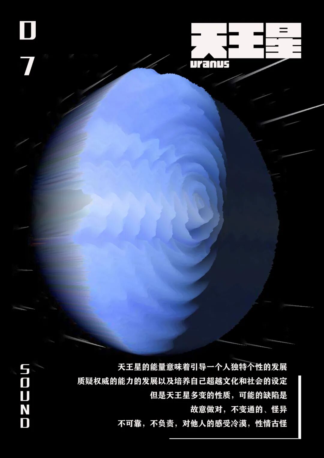 设计说明:我们每个人都是一个小星球,拥有着自己的内心声音,希望有人能去倾听、理解、赞同。那该如何去表达呢?宇宙中星球的声音是什么样呢?因人而异,但你可以通过我的设计去感受,也许可以通过我看到自己,感同身受。这些声音,不是音乐,却是名副其实的“天籁”,你可以把它当作超级另类音乐听,也可以只是很原味的听听什么是星球的声音。
