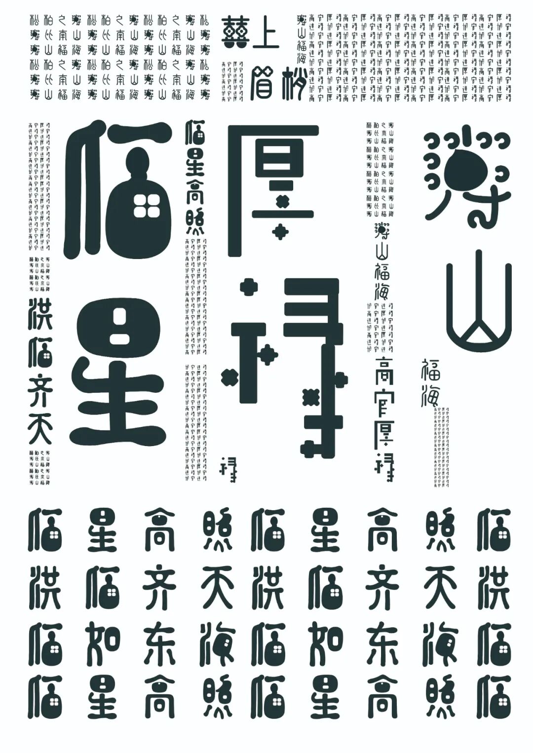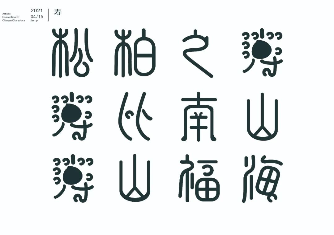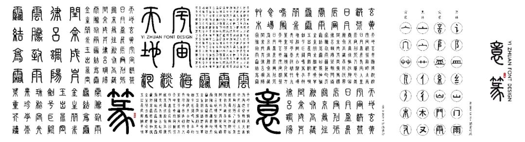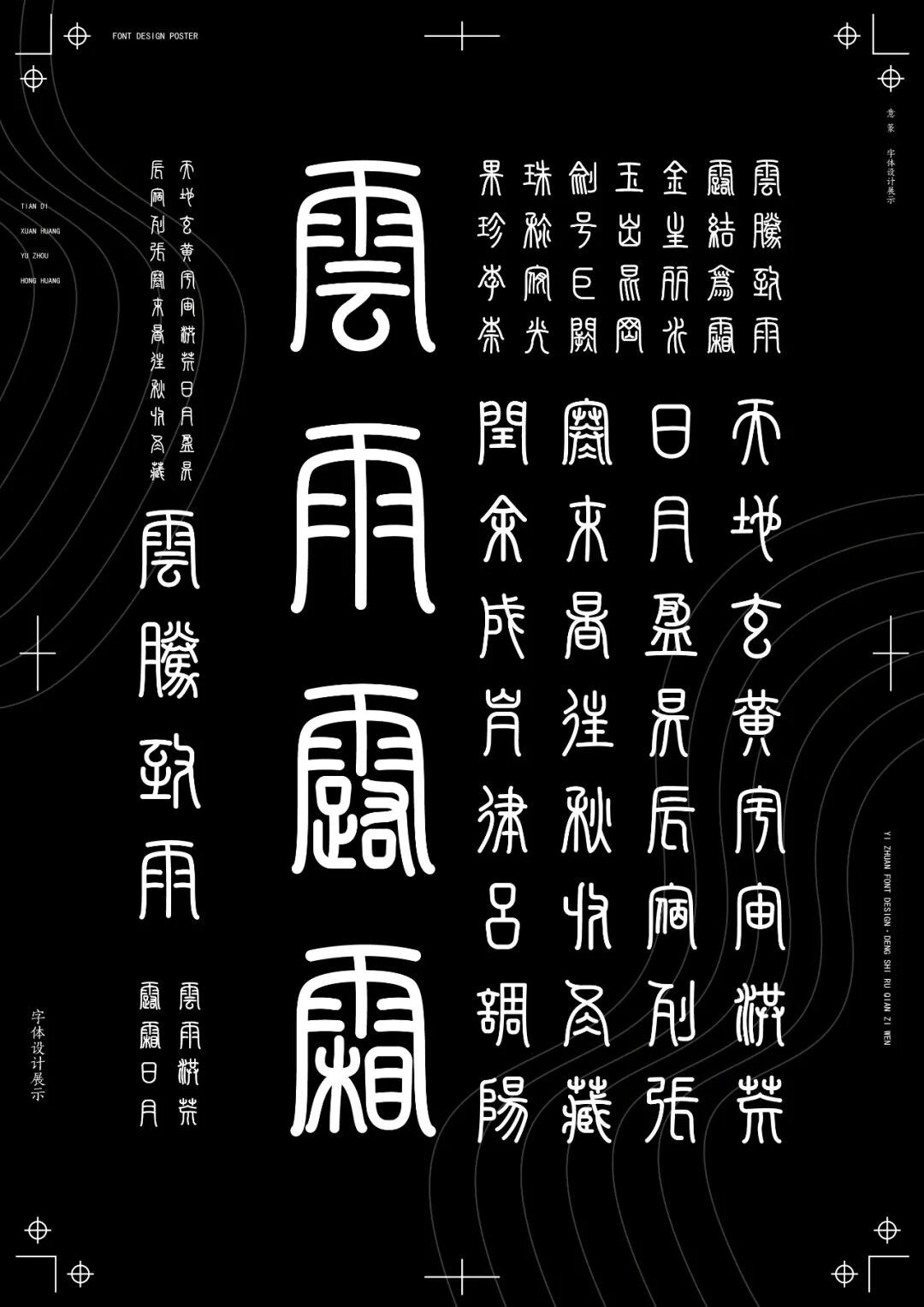 设计说明:篆书在书法创作中的意义在于传达一种原始而神秘的美,启迪人们思索一些非常本源的问题,但是对于现代人来说,小篆存在着过于繁琐及难以辨识的缺点。 意篆字体设计主要增加它的可识别性,字体笔画修长、齐整圆润,减少小篆的繁杂笔画,最大程度还原篆体的典雅美感。