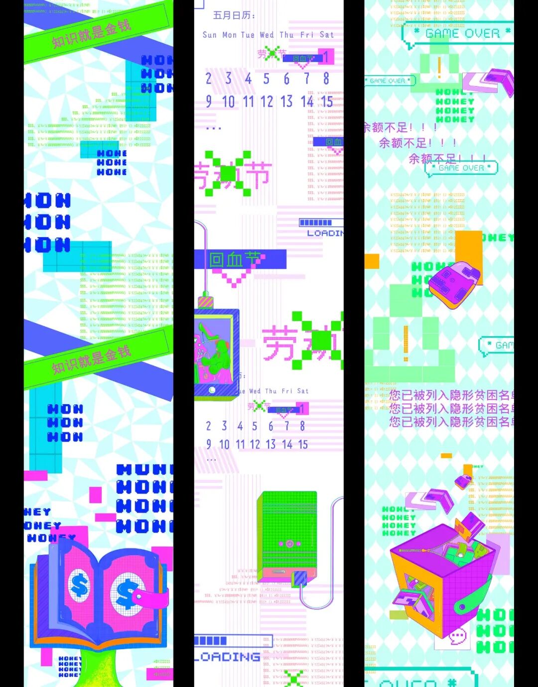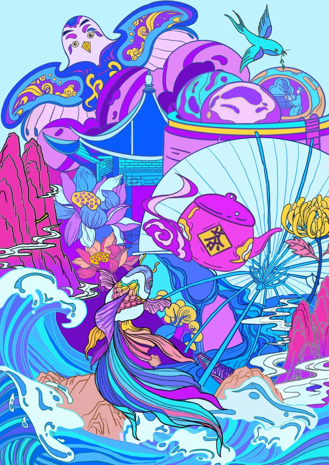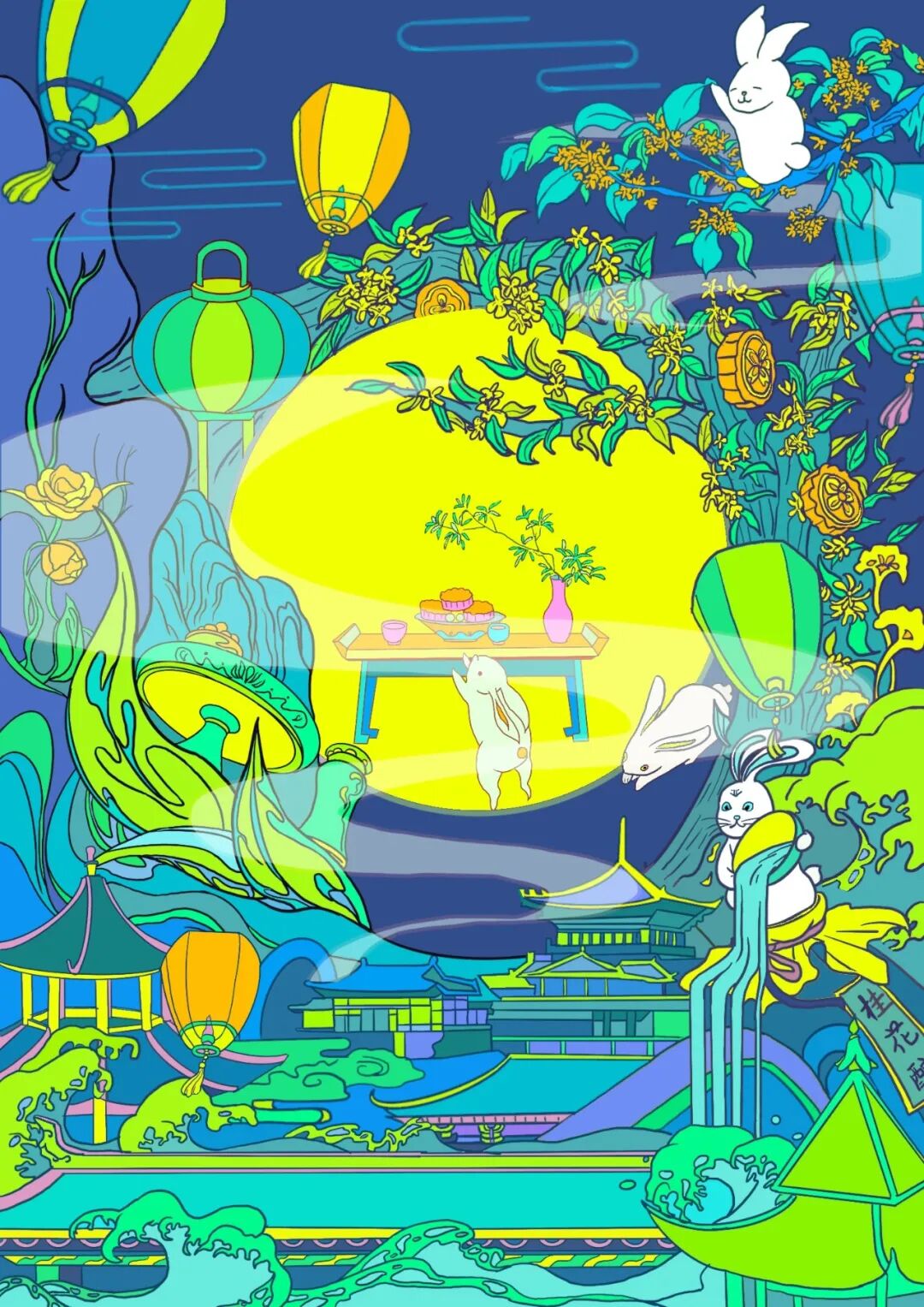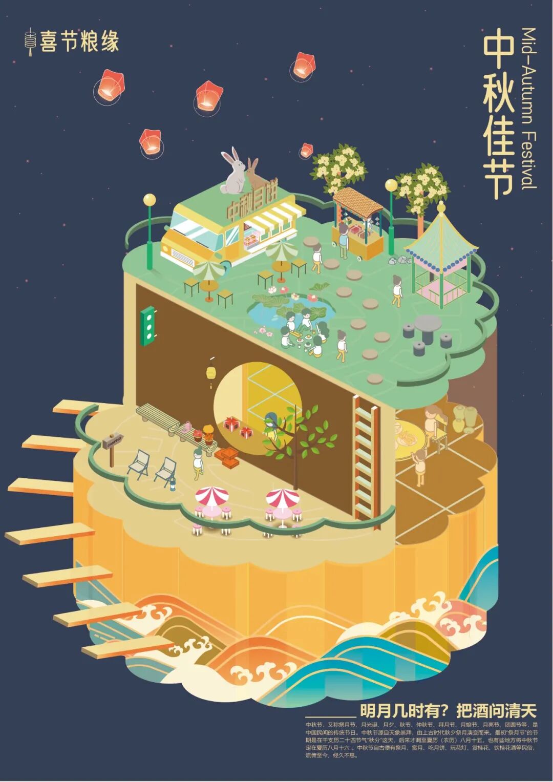 设计说明:“新国潮”是以年轻人的视角去看传统事物。以波谱、复古风格对传统节日进行形态重塑,并试图通过夸张的图形和色彩,表达对传统文化的新观点,吸引年轻人的注意,关注传统节日及其文化内涵。