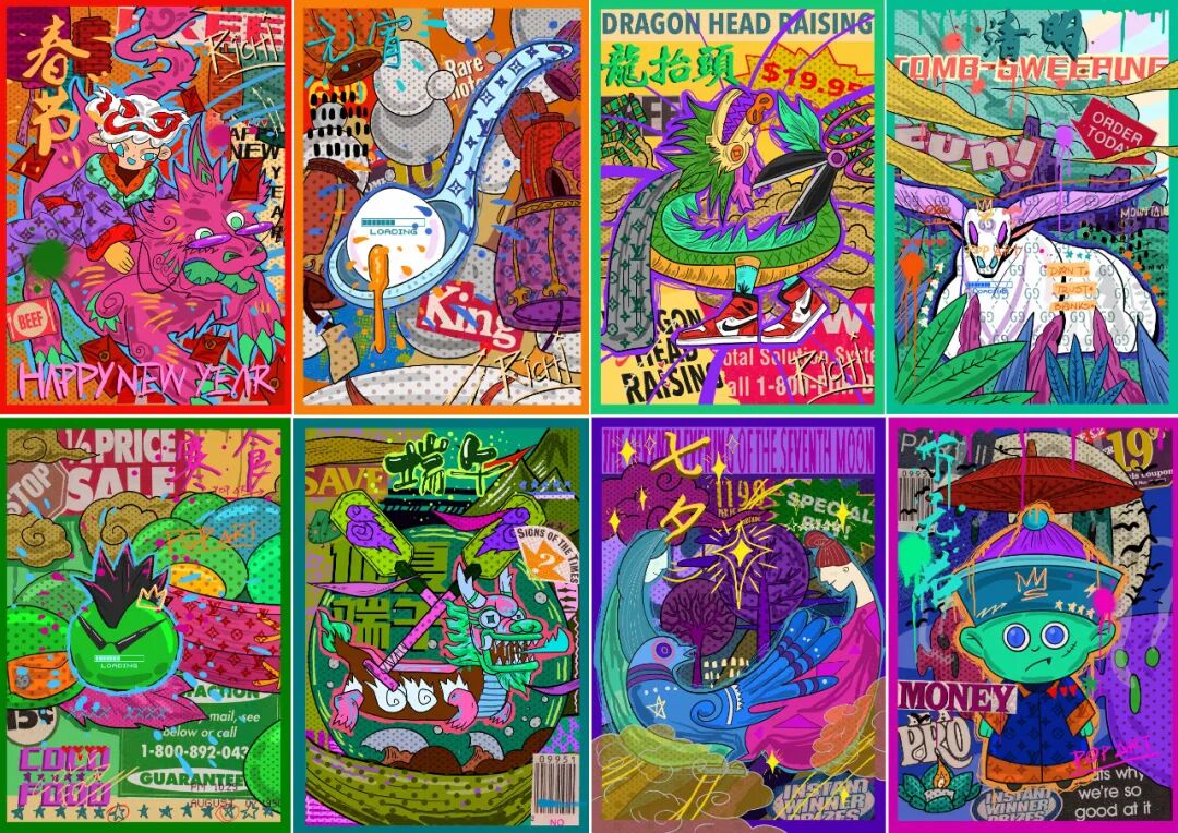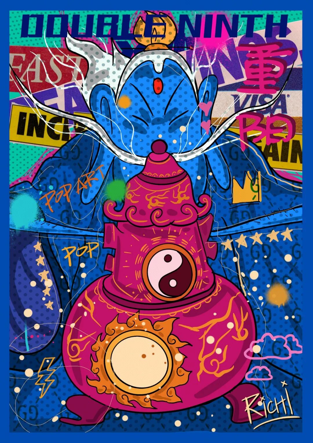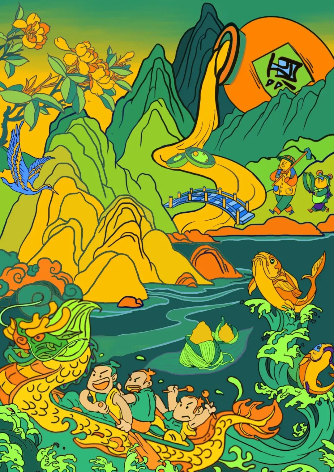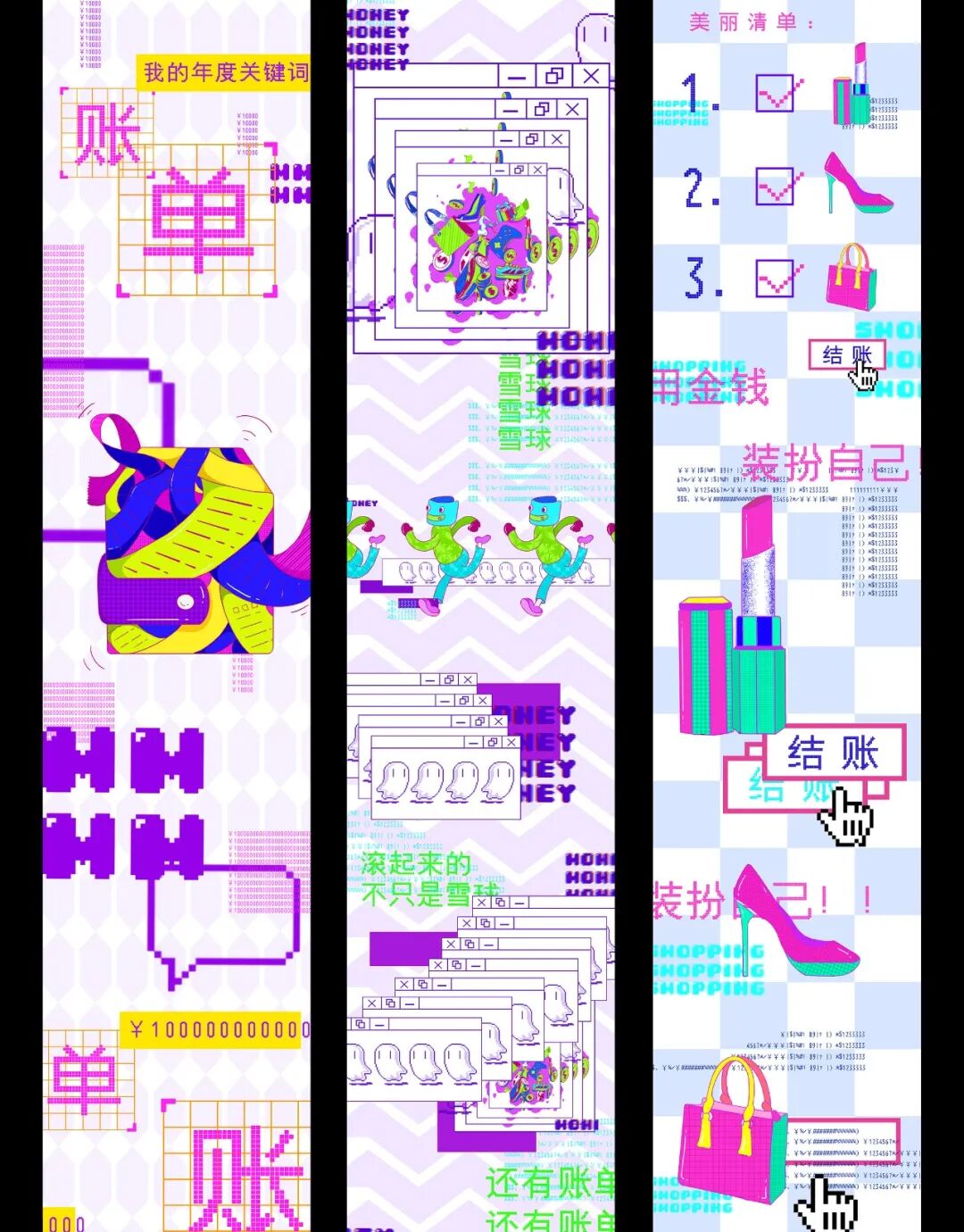 设计说明:“新国潮”是以年轻人的视角去看传统事物。以波谱、复古风格对传统节日进行形态重塑,并试图通过夸张的图形和色彩,表达对传统文化的新观点,吸引年轻人的注意,关注传统节日及其文化内涵。