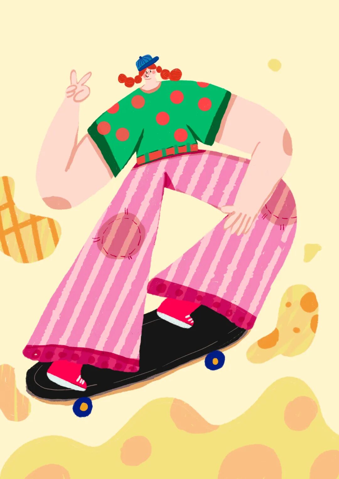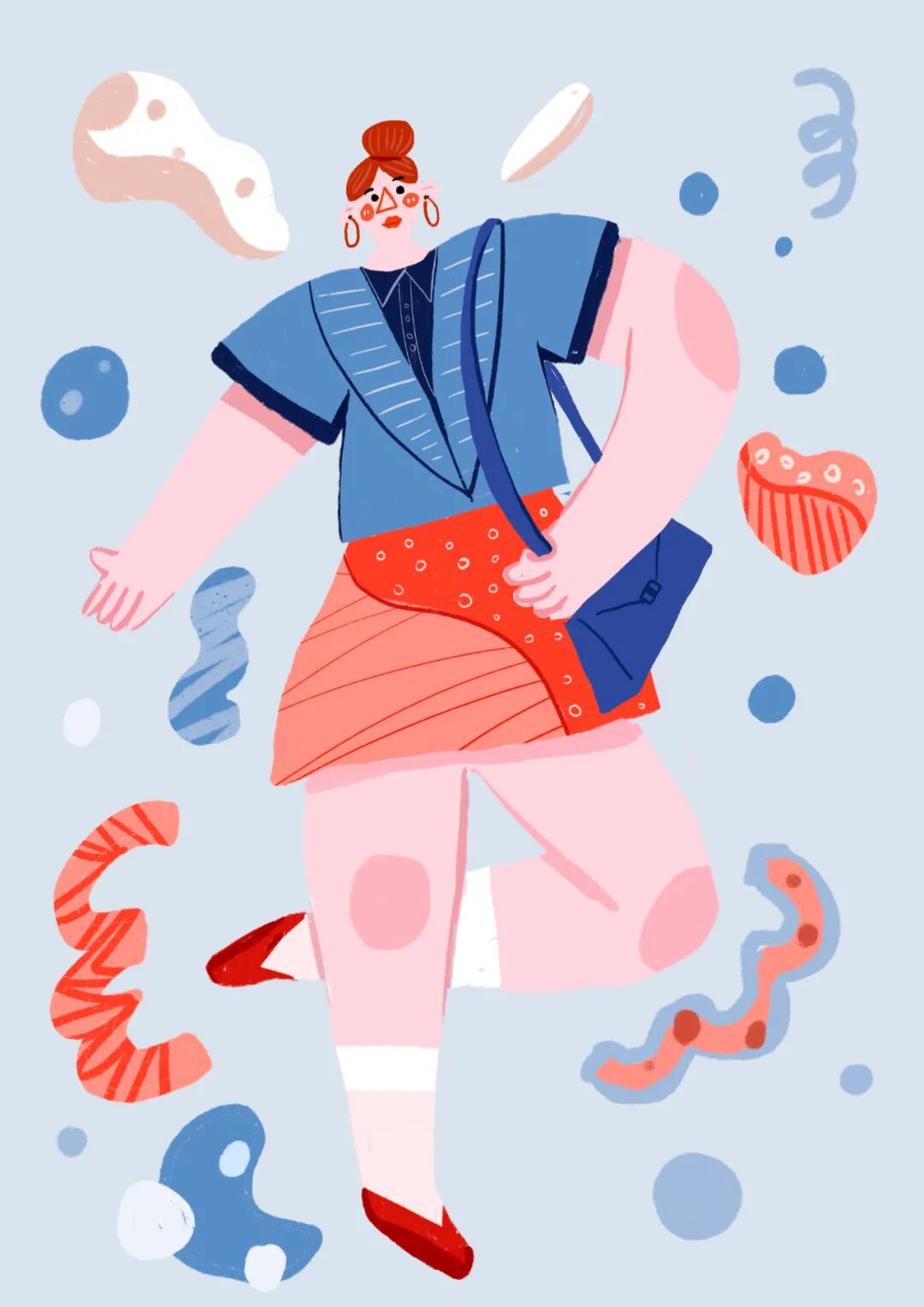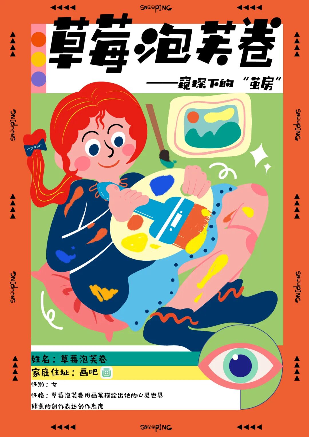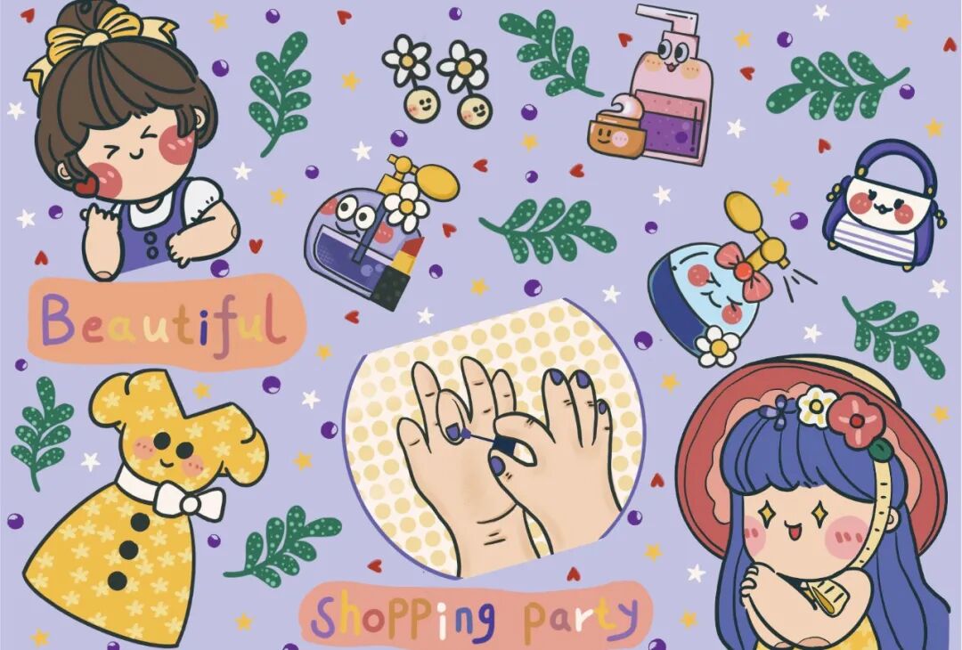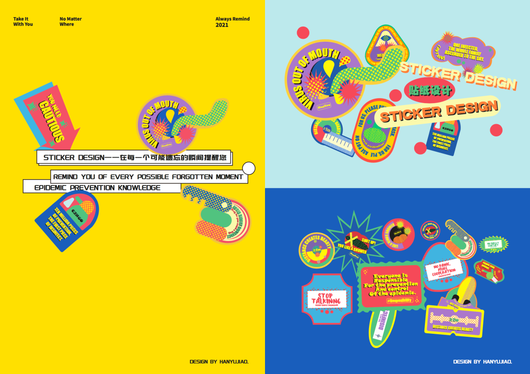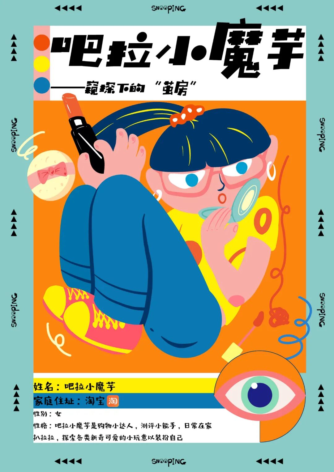 设计说明:越来越多的女生会有“容貌焦虑”对自己不自信,不愿意社交,没有自己的存在感,通过插画表达了自己对生活的态度。趣味性的标签和夸张的人物动态更加突出特点,希望每个女孩都可以自信闪闪发光。