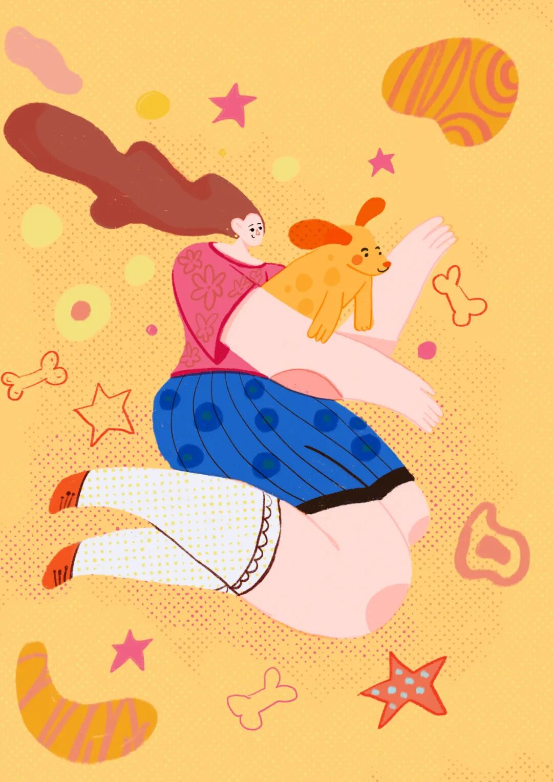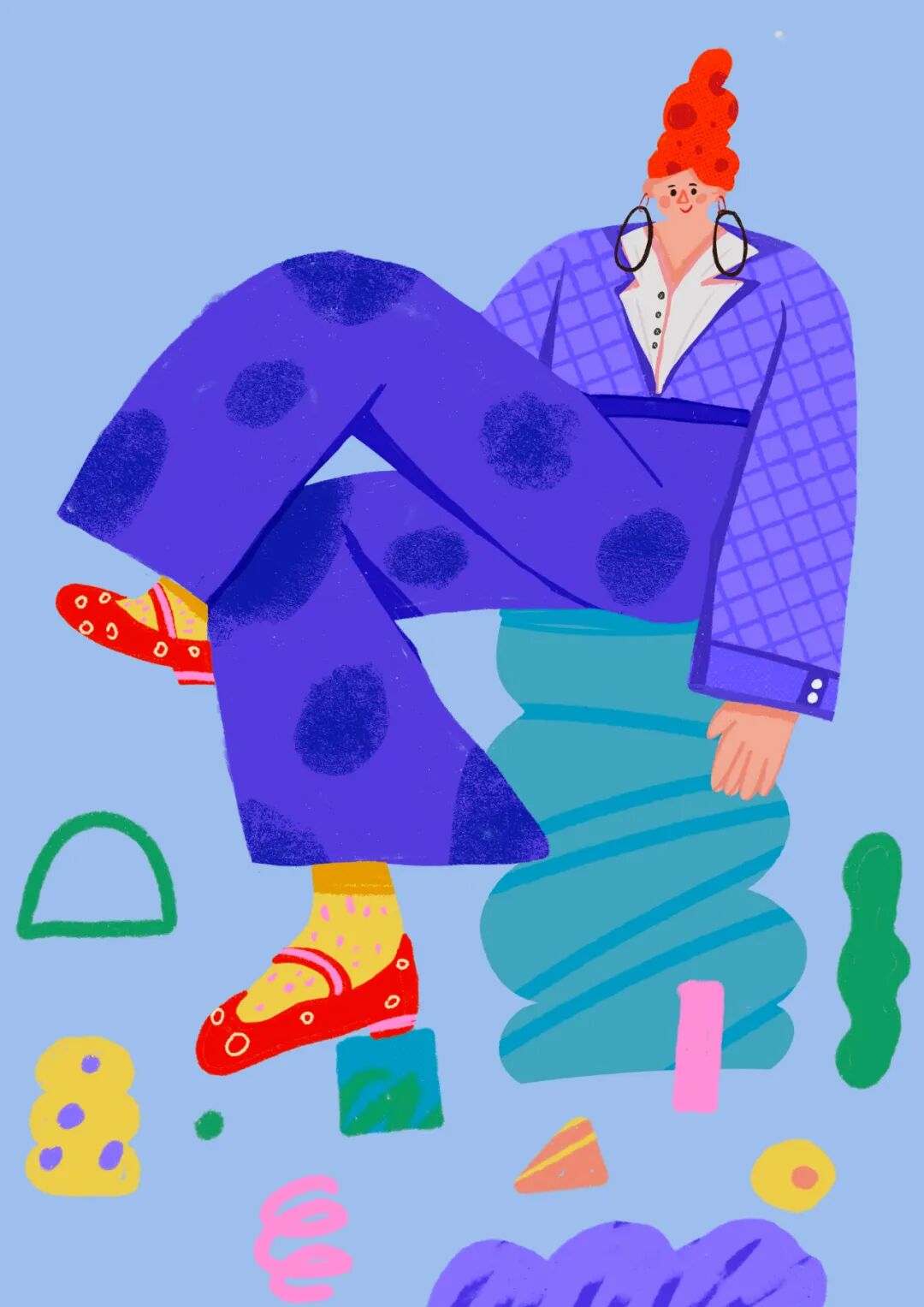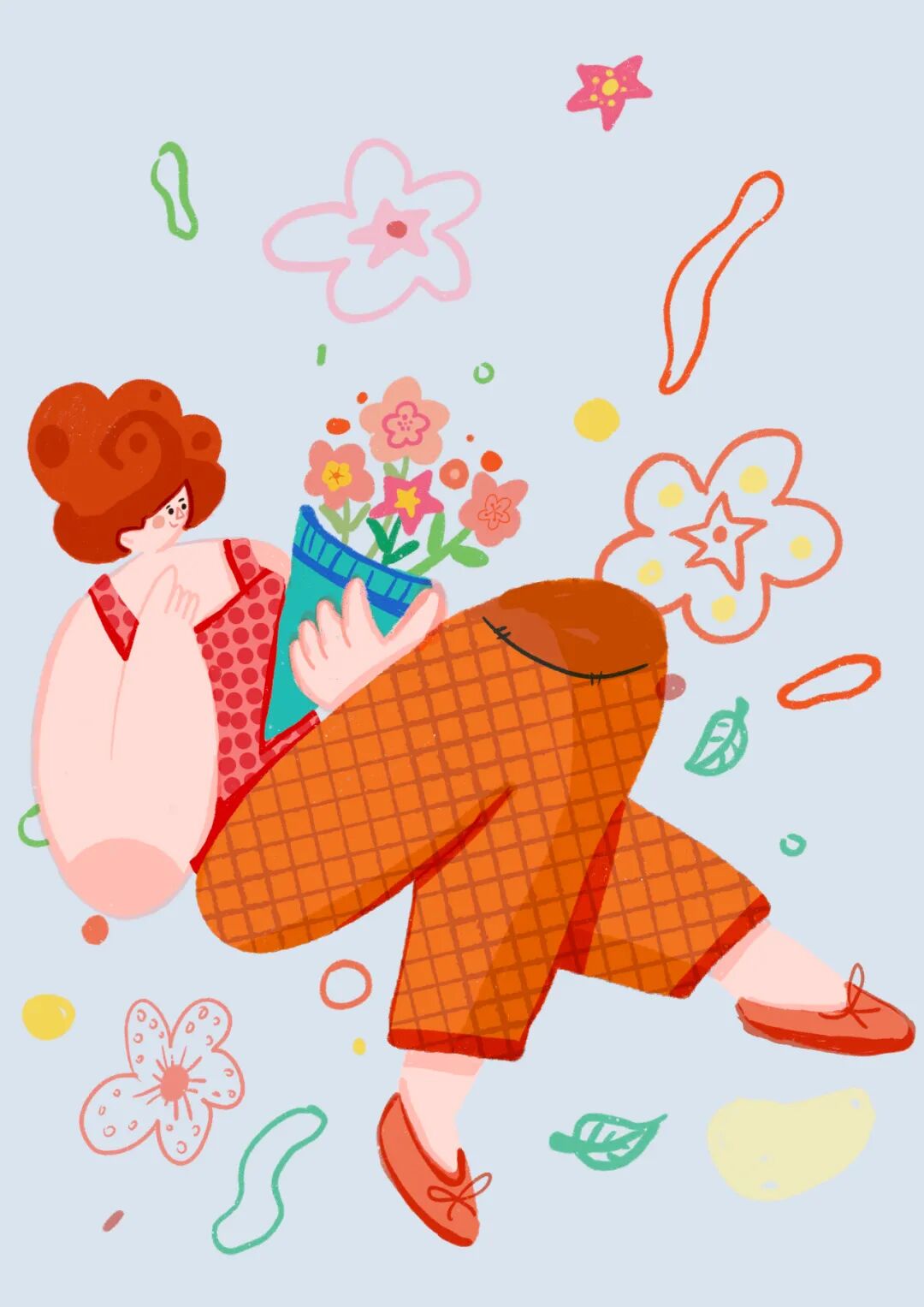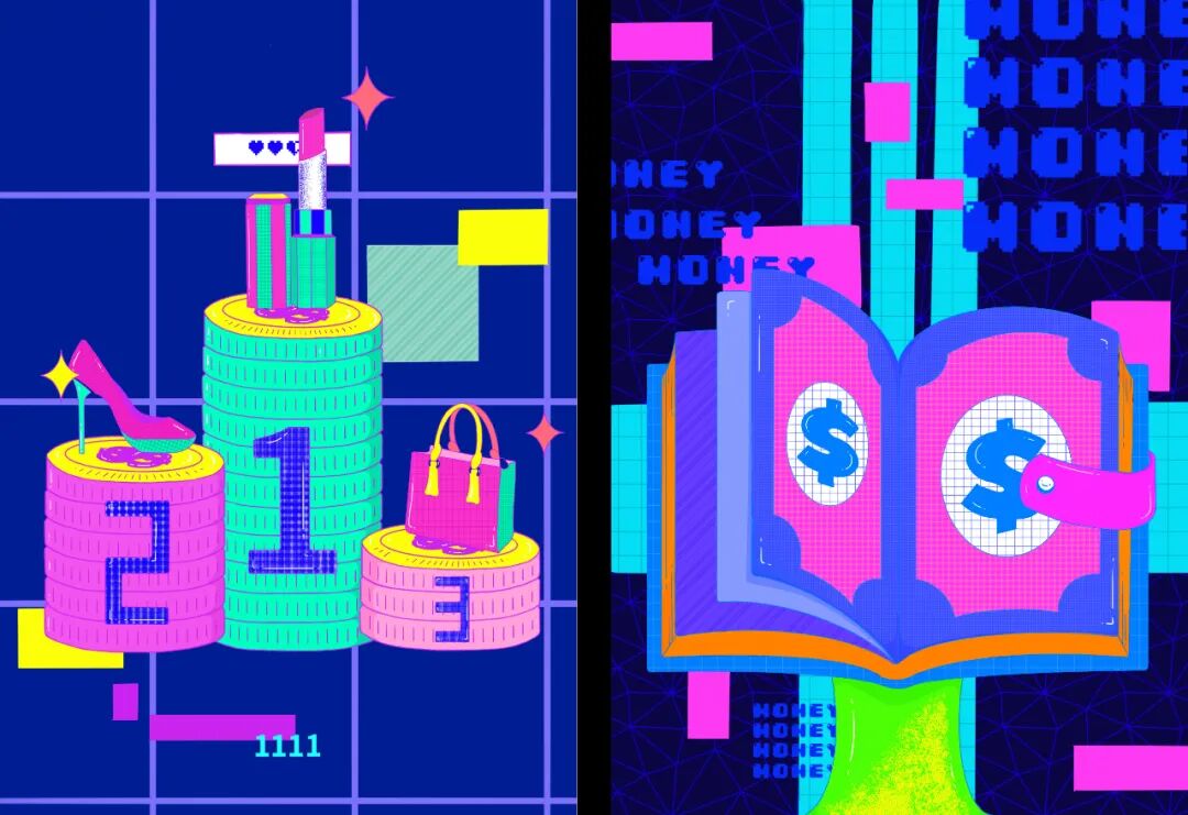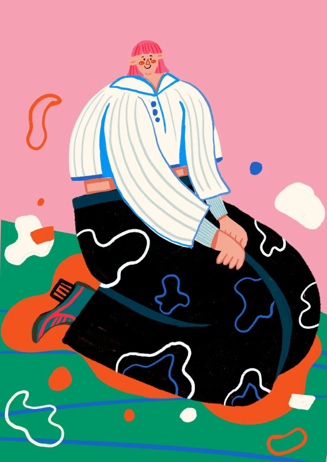 设计说明:越来越多的女生会有“容貌焦虑”对自己不自信,不愿意社交,没有自己的存在感,通过插画表达了自己对生活的态度。趣味性的标签和夸张的人物动态更加突出特点,希望每个女孩都可以自信闪闪发光。