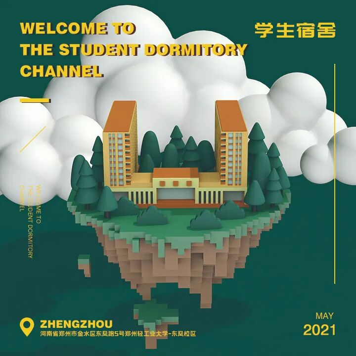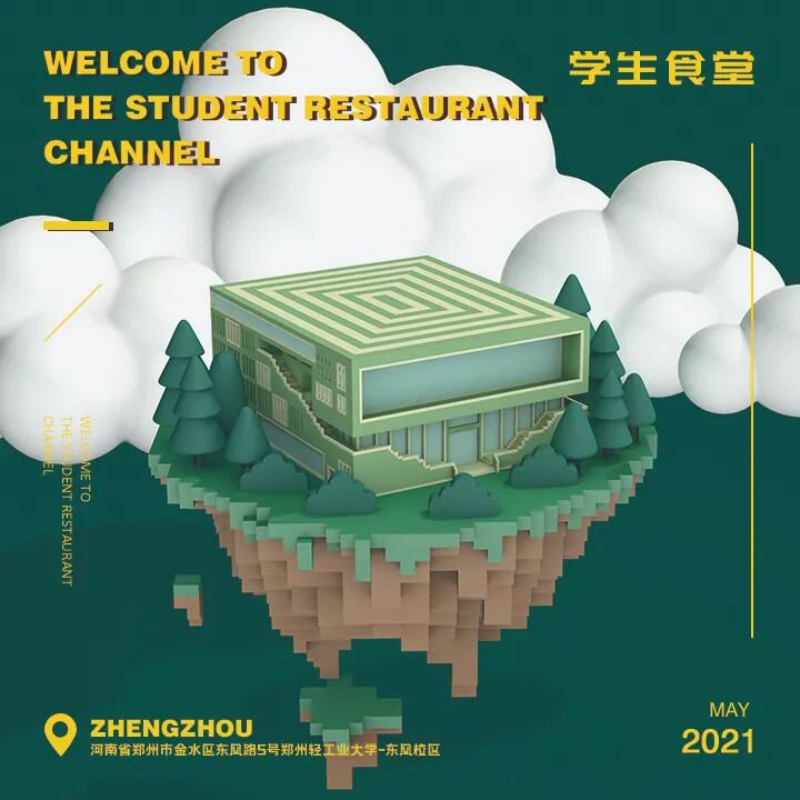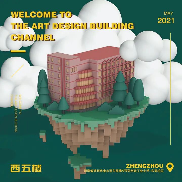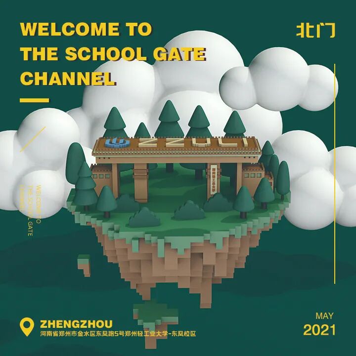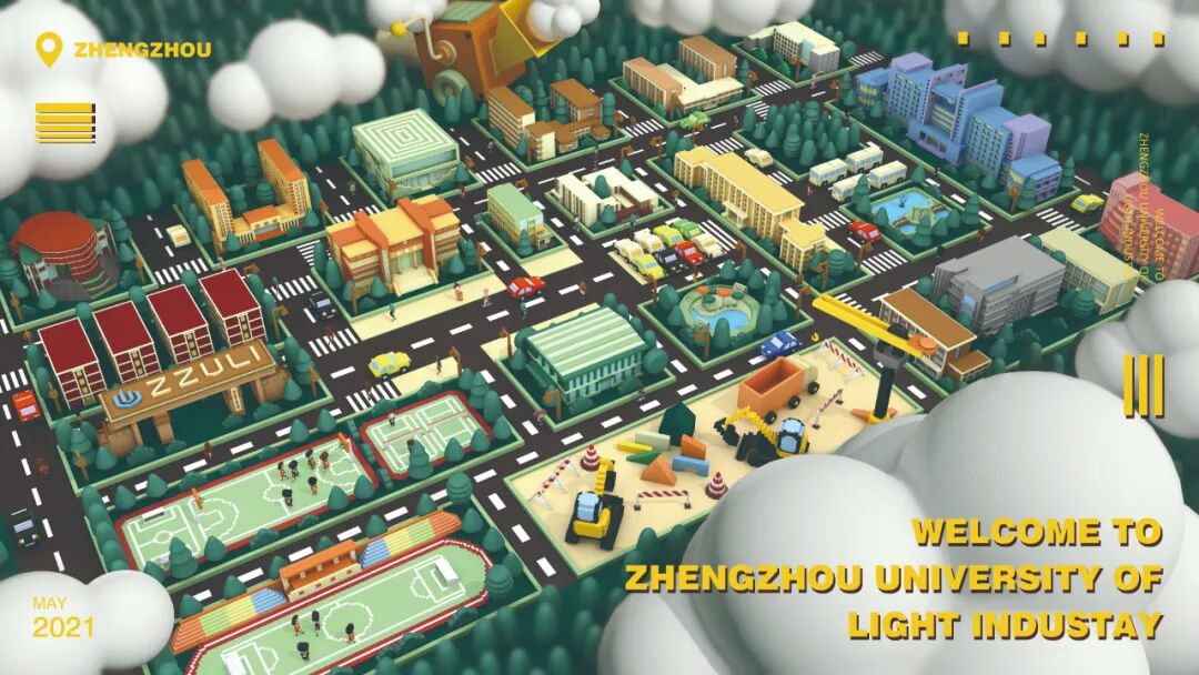 设计说明:临近毕业,回忆起校园里每一栋建筑、每一个场景都有说不完的故事。我以郑州轻工业大学里的标志性建筑为原型,保留建筑本身的外形特色,以3D插画的形式还原了校园实况,制出一份生动可爱的校园地图。这不仅是毕业生的回忆画卷,也是开启新生大学生活的指南。
