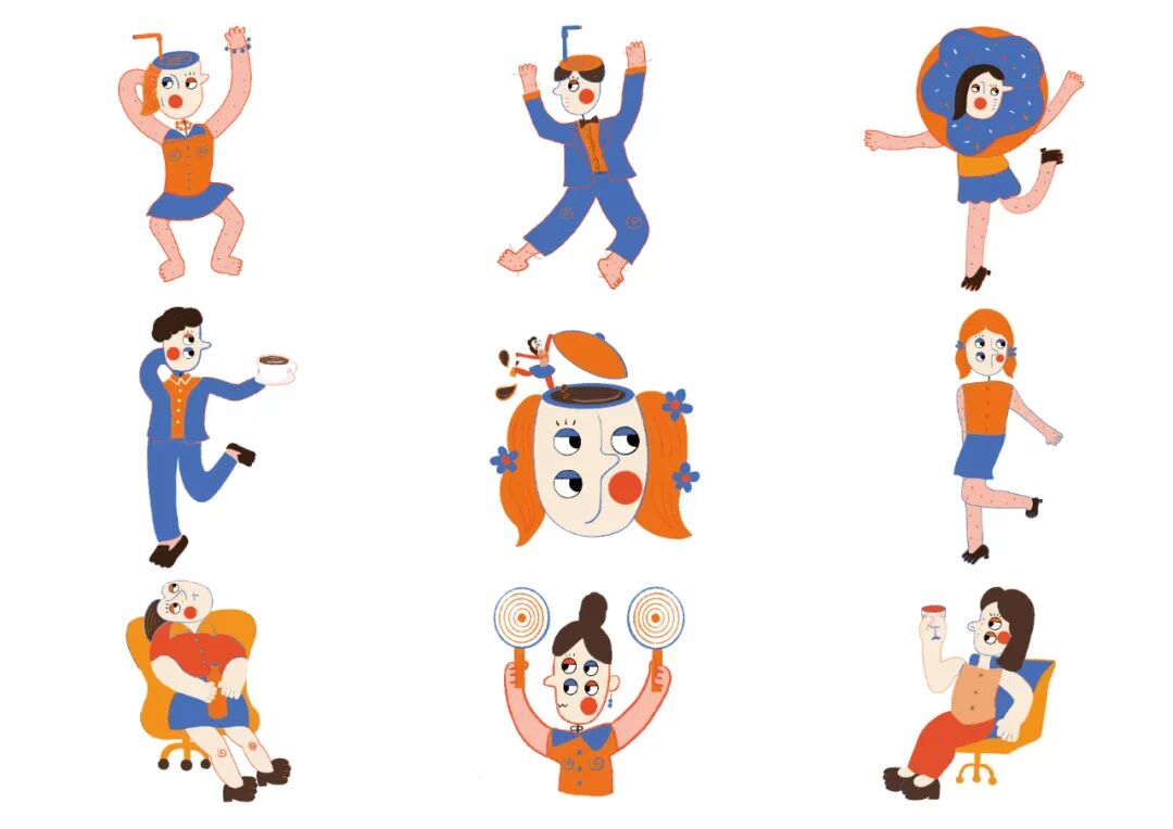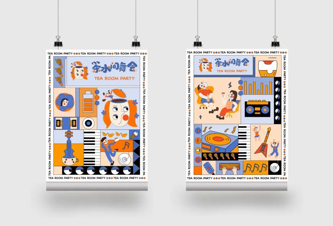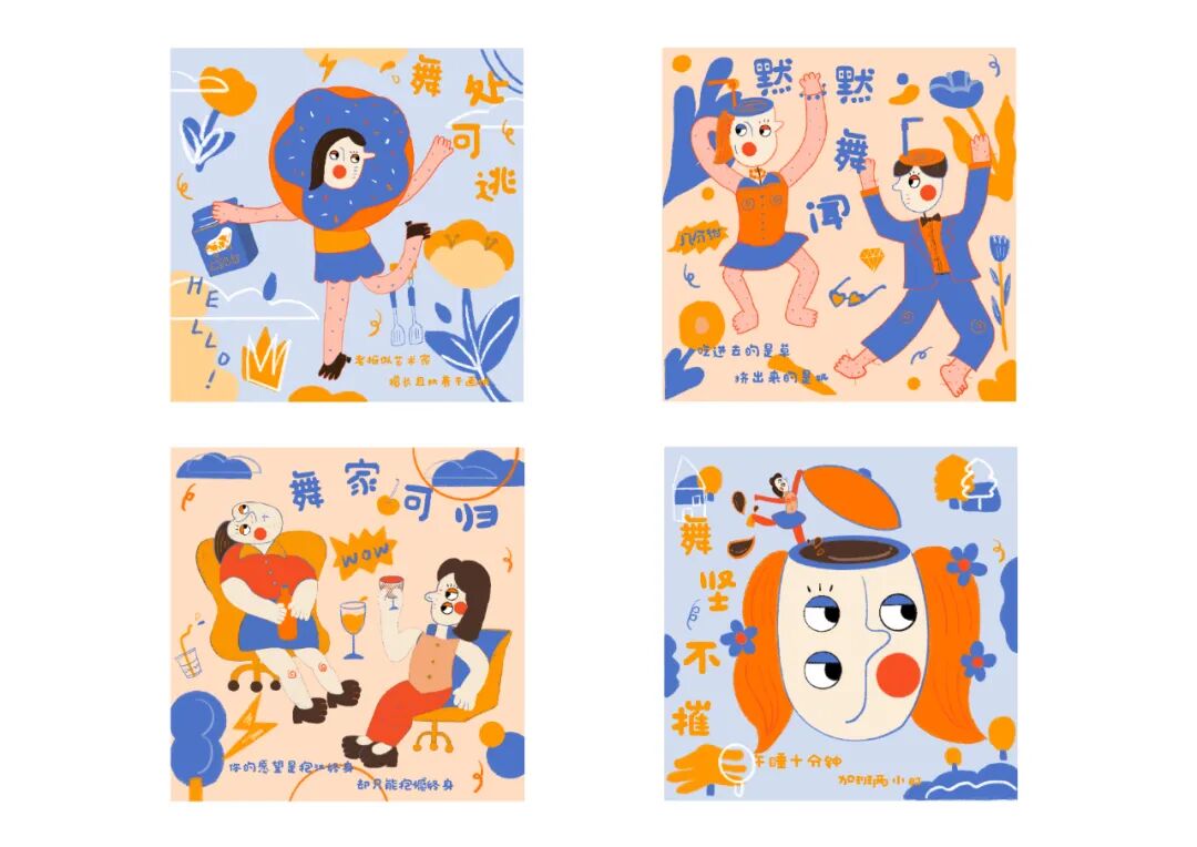 设计说明:随着生活的快节奏,越来越多的人特别是青年一代的上班族,不负生活的压力给自己带上了微笑面具,而在繁忙的工作中,茶水间是让上班族们感觉到放松的一个场所,以这种视角畅想在茶水间举办一场舞会,采用谐音的形式增加趣味感,如‘“舞”坚不摧——午睡十分钟,加班半小时(咖啡类)’来对应一个符合形象的饮品类别,希望给青年一代带来心灵的治愈,同时也呼吁大家多多关注这类人群。