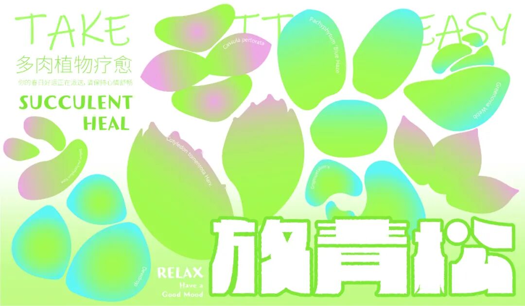 设计说明:现代社会中人们更容易产生压力、焦虑、抑郁、暴躁等等负面情绪,所以我希望能够通过我的设计给人们带来一些轻松感,从而更好的面对社会、面对生活。我选择以售卖多肉植物为主体的品牌设计,是希望能够以植物的力量来让人们放松,从精神上得到慰藉。