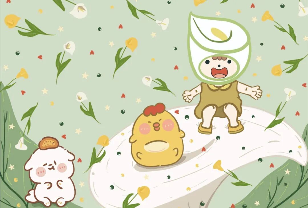 一片羽口罩品牌主要针对年轻女生和儿童进行口罩产品及包装设计,一共有三个系列、九个主题,针对每个 主题绘制一张主题插画,共九张。根据形象元素进行对应的包装款式和口罩印花图案设计。