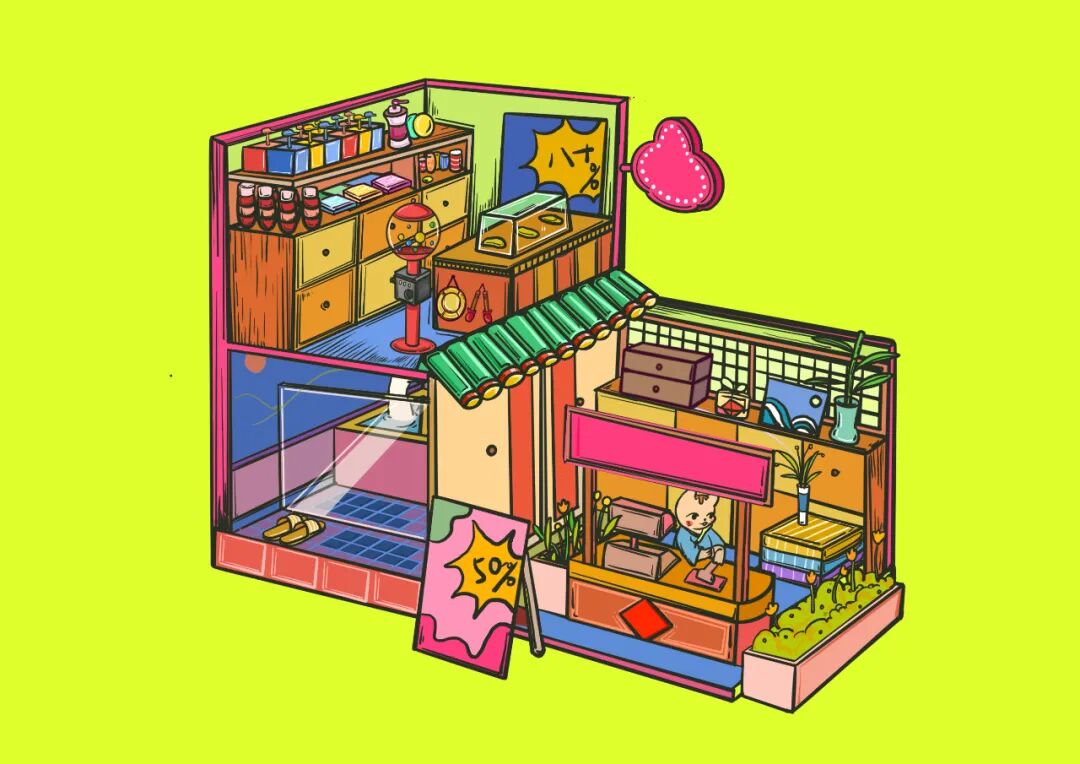 设计说明:在这个快节奏生活的时代,周遭过多的压力、激烈的竞争,让我们一刻不敢停歇。而我希望别让快节奏生活毁了我们的想象力,我们需要打开脑洞,尽情想象。自己在生活中也会有很多天马行空的想法,看到感兴趣的事物会脑补出一场大戏,这也是我的快乐源泉。所以想要通过艺术创作方式呈现自己的日常脑洞,给人们不一样的体验。