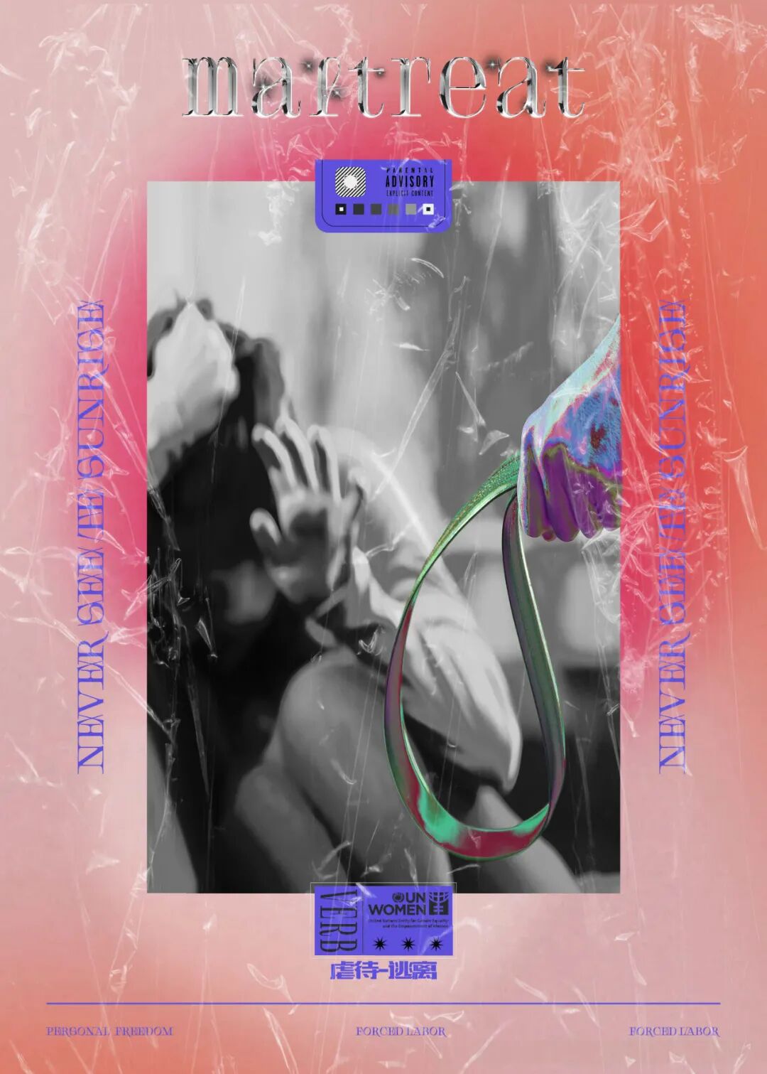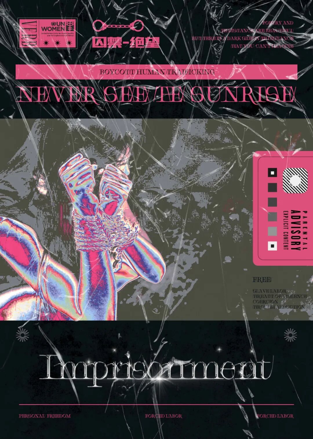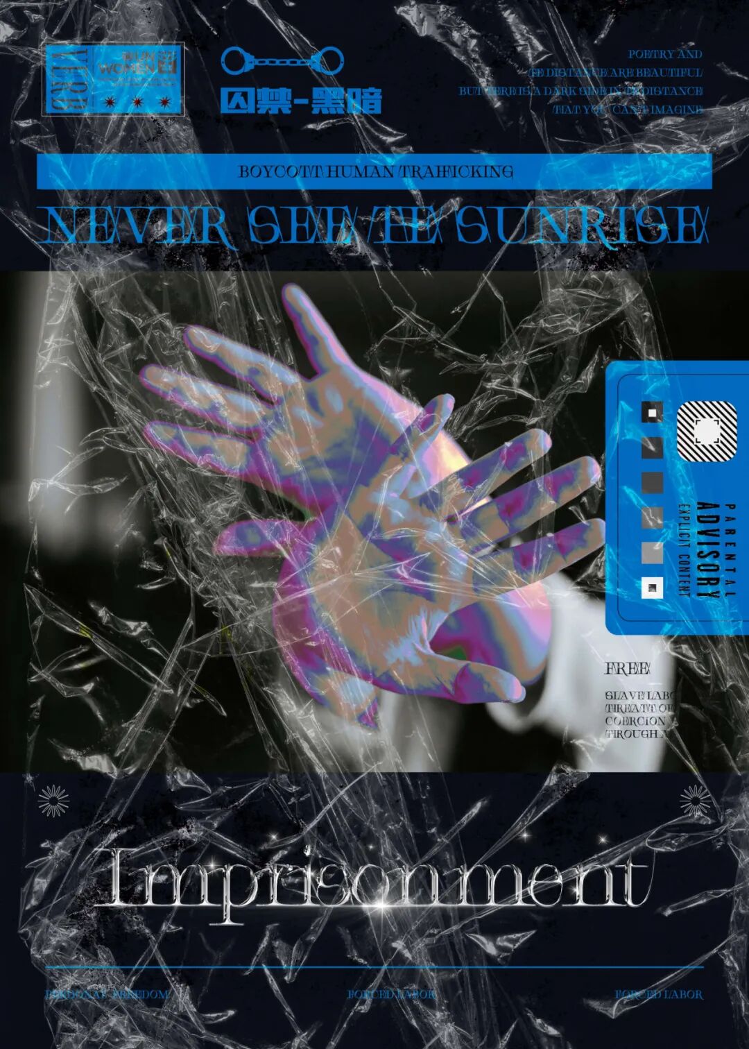 设计说明:今年国际雷鬼海报大赛组委会与牙买加国家安全部合作联合发起了关于抵制贩卖人口主题的设计赛事,希望通过视觉艺术引起人们对这个社会问题的重视。此次设计以该赛事为选题,在纪实摄影与视觉图形的组合、打散中,从“虐待”、“贩卖”、“囚禁”三个方面对核心内容进行诠释,并以酸性设计加强画面的设计风格和视觉冲击力,希望以此唤醒人们对这一内容的关注。