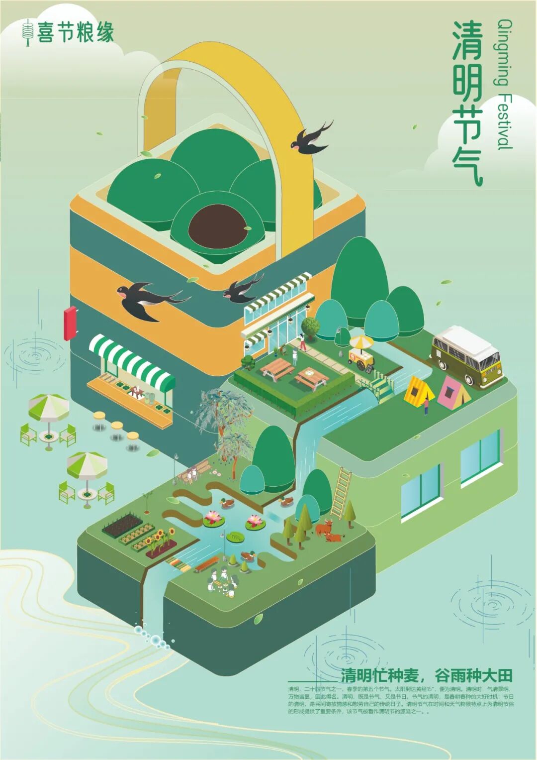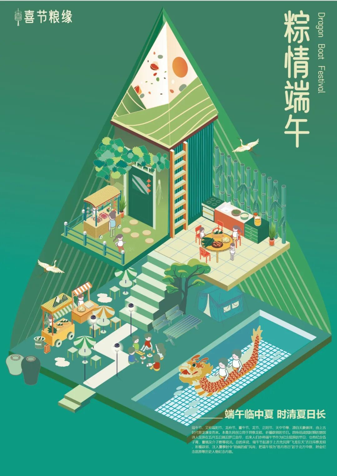 设计说明:中国传统节日,是中华民族悠久历史文化的重要组成部分,蕴含着深邃丰厚的文化内涵与人文精神。民以食为天,食物算得上传统文化最通俗的载体了。我的设计从这里入手,把食物和节日结合以“喜节粮缘”品牌。把四大传统节日的传统小吃作为载体设计了一系列节日插画和包装设计。