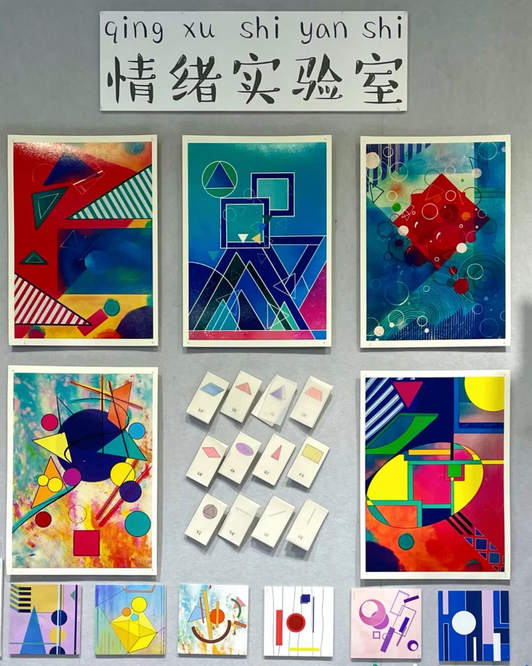 设计说明:随着科技发展,城市化进展加快,生活环境的变化也越来越大,随之而来的情绪压力不容小觑,人们时常忽略了自身和他人的情绪变化,久而久之日渐压抑,失去了沟通与情绪释放的能力。本作品参考心理学的资料,用基础图形对简单情绪进行定量,根据主观情绪进行情绪图构成,希望能够引导人们关注情绪变化。