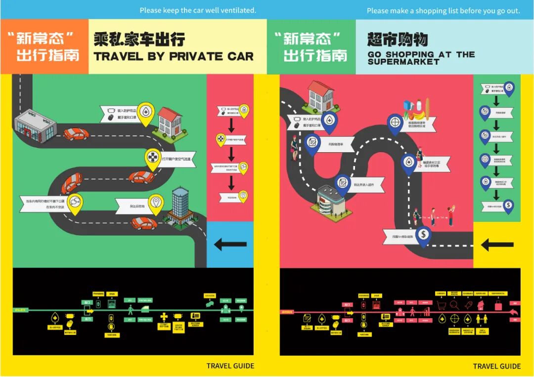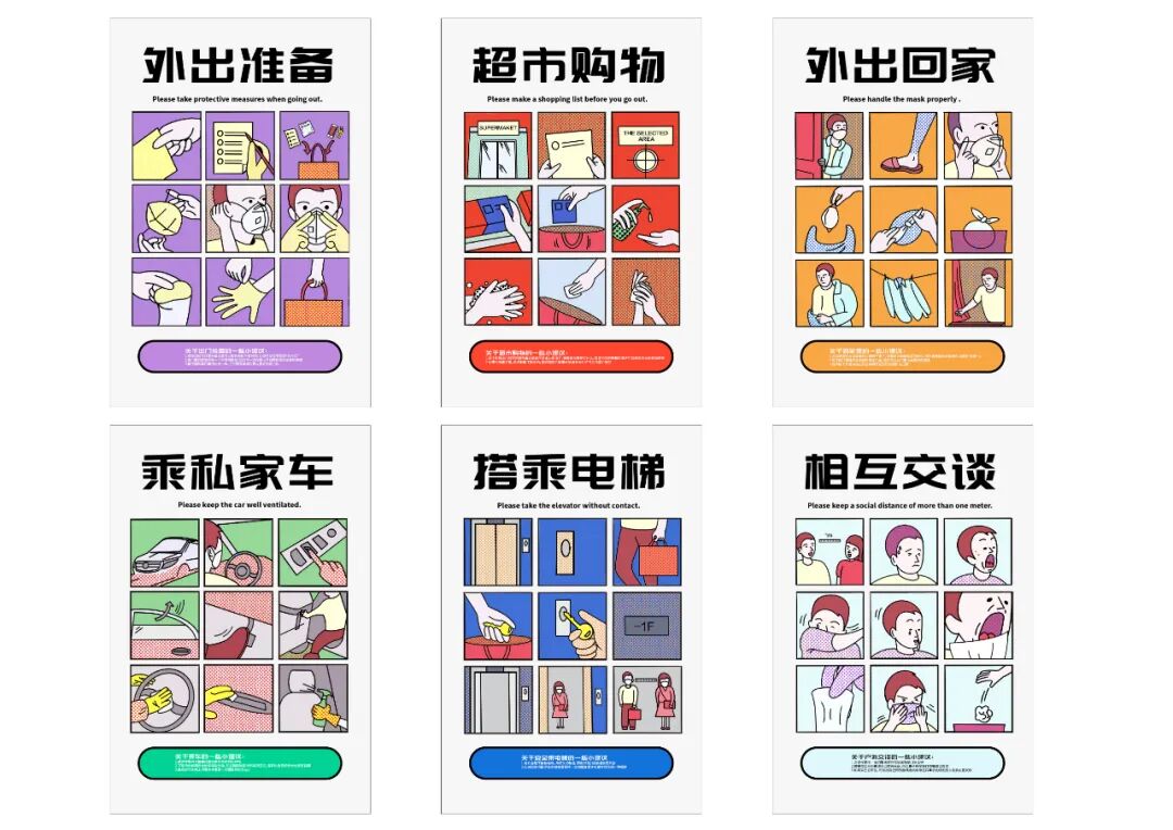 设计说明:设计选题基于突如其来的疫情对于人们日常生活造成了很大的影响,比尔盖茨曾在演讲中说,未来能杀死上千万人的不是核战争,而是高度传染的病毒。因为我们在核威慑上投入了很大的精力和金钱,而对防止疫情的系统上却投资很少。随着疫情的发展我们能看到,问题不在于我们没有一套可以使用的系统,而是我们根本没有任何系统。因此,我想设计一套关于疫情“新常态”的主题设计,使人们在面对当前甚至未来突发的疫情中可以有条不紊。