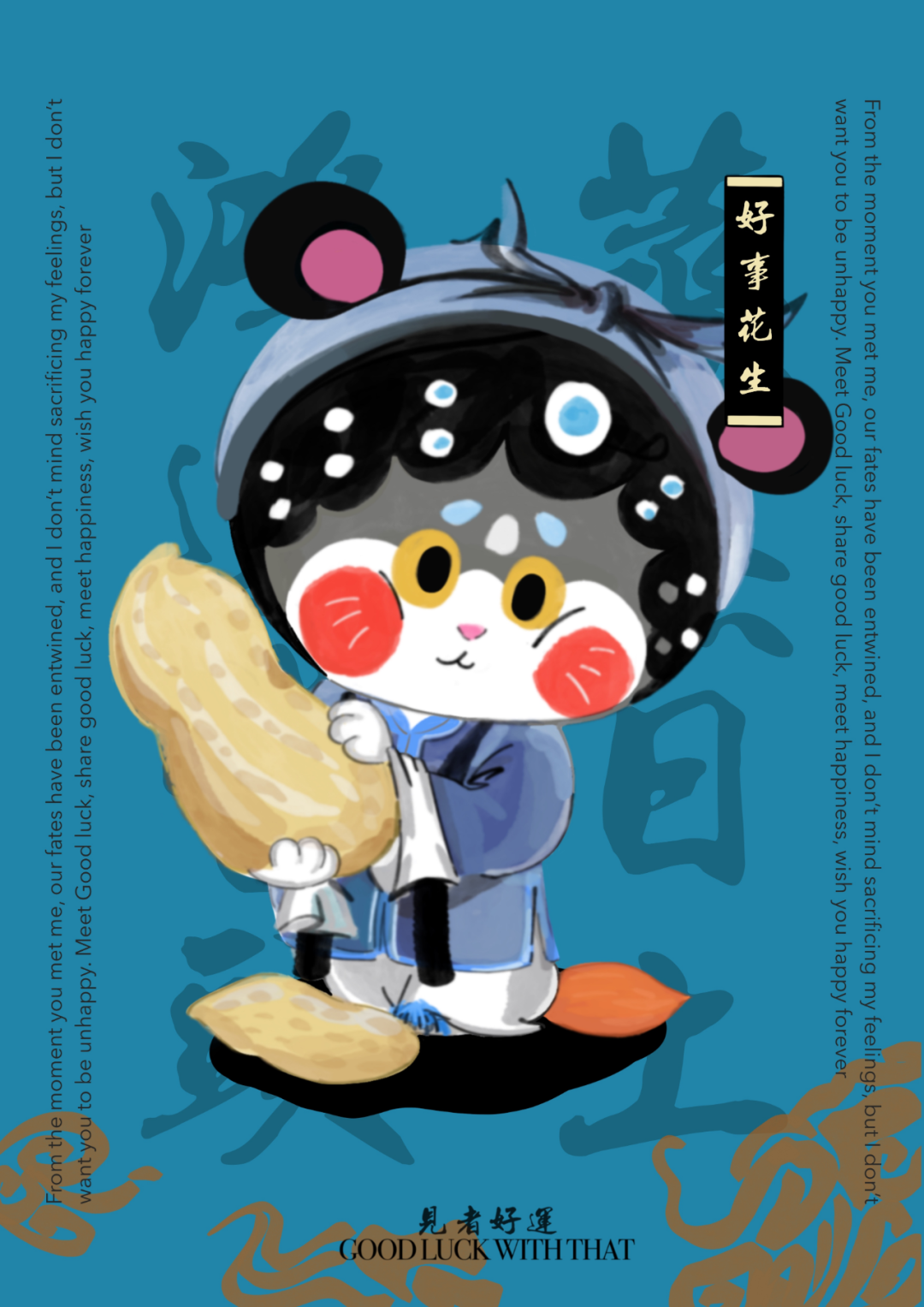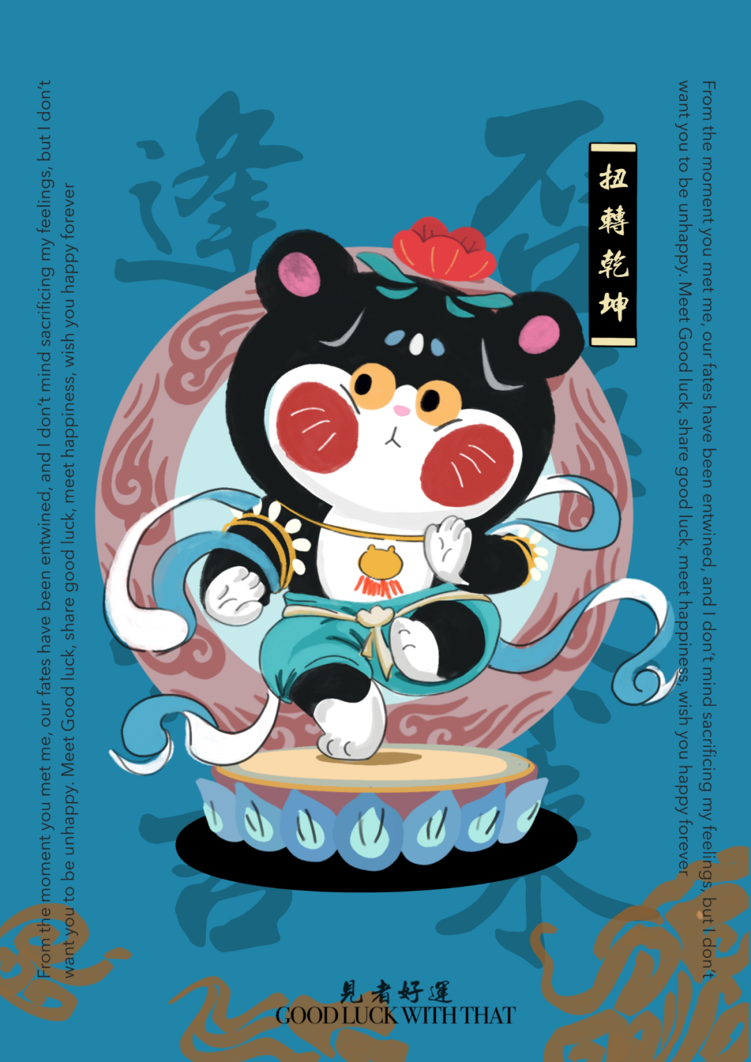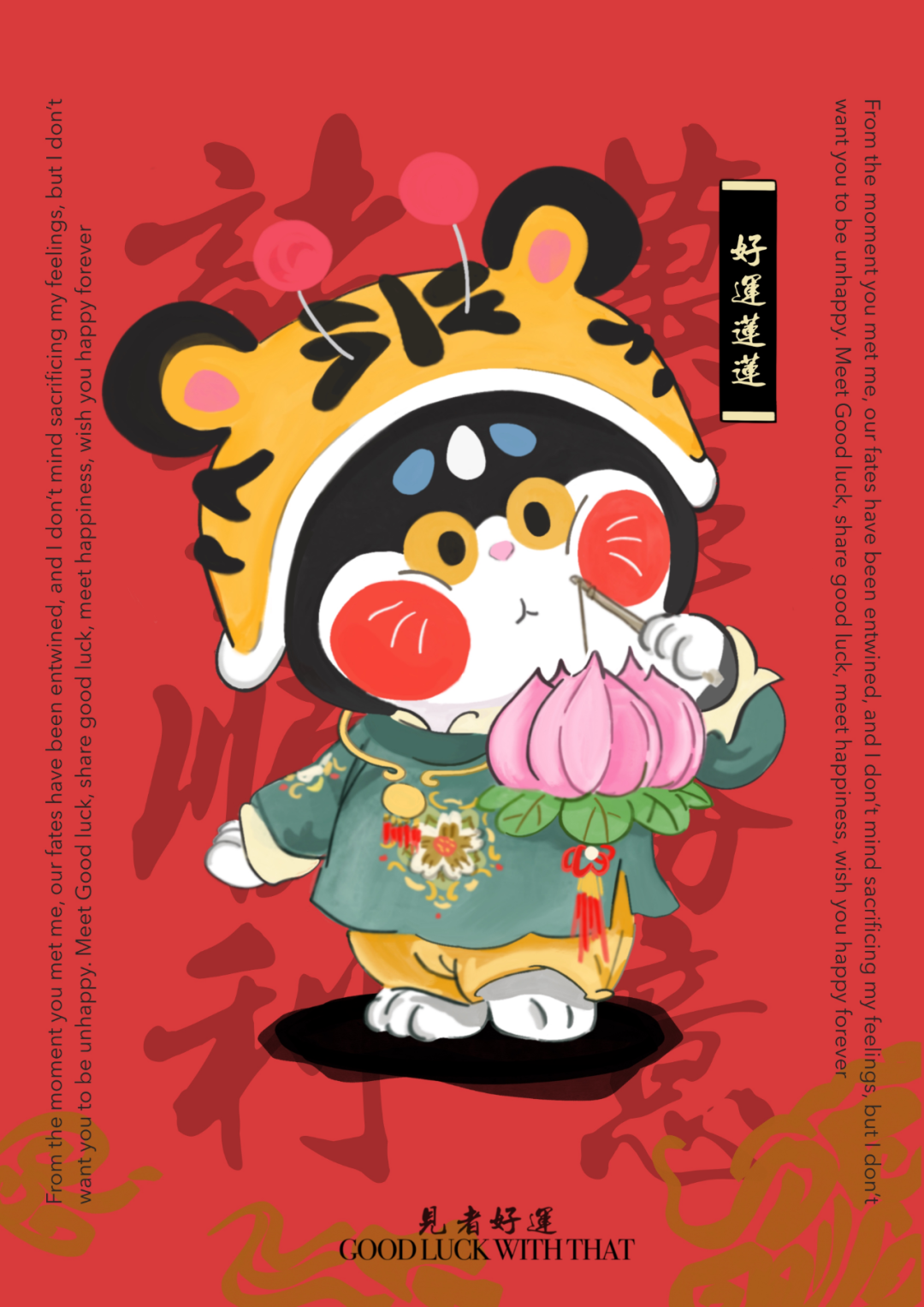设计说明:“见者好运”创意源于中国传统的祈福文化。今天的年轻人在生活中仍然有着强烈的祈福需求,只是传统的祈福形式正在从神秘的宗教仪式转变成为带有娱乐性的解压方式,其背后反映了人们对日常生活工作压力下的一种焦虑情绪的转移与释放。