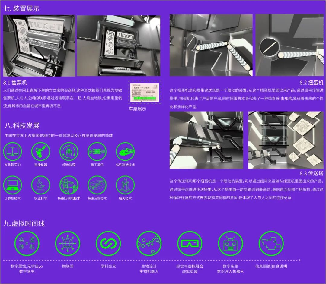 指导老师评语:《设计革命》此件作品以科学与艺术、技术与设计的发展为背景,聚焦技术进步推动设计变革的规律。作品通过概念创新和多维形式的融合,逐步探寻未来设计的发展方向,尝试建立基于本土文化语境下的中国设计体系。