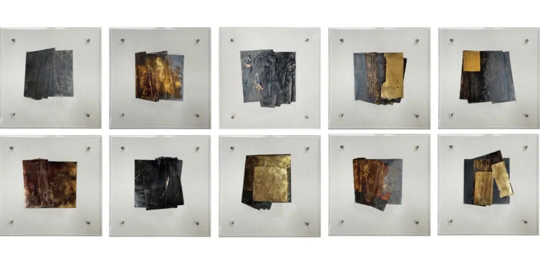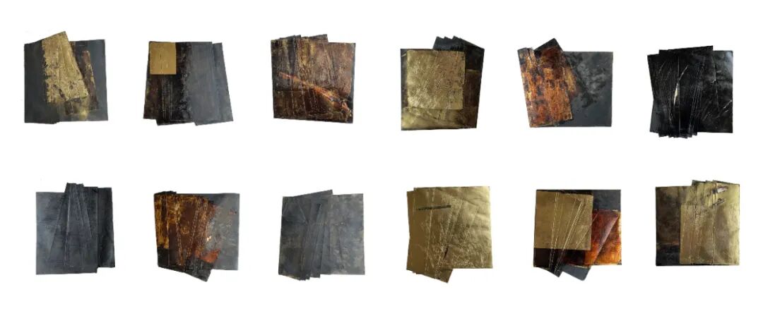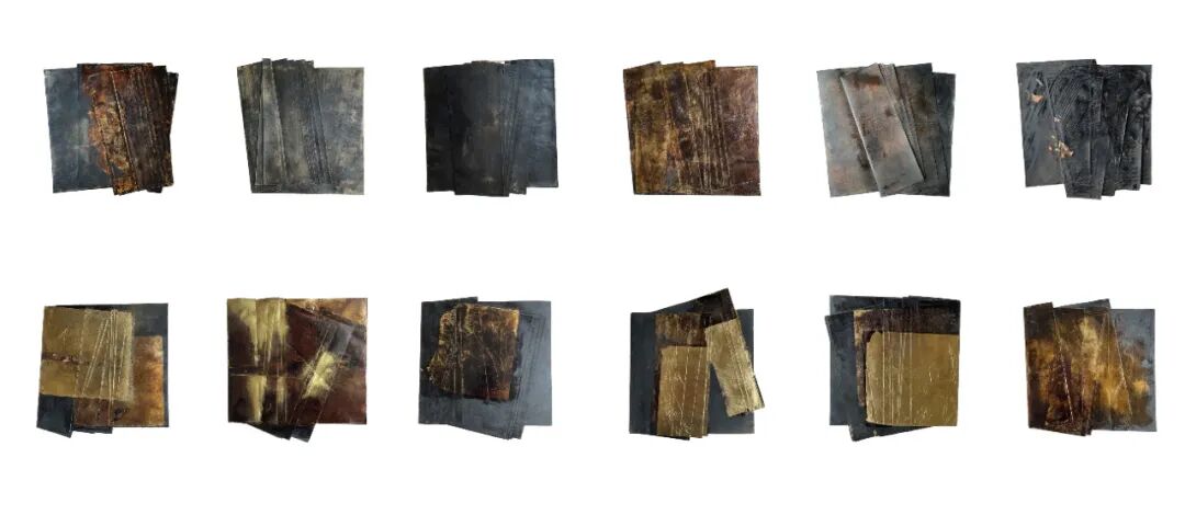 作品说明:“临颖神驰,书不成字,纸短情长,伏惟珍重。”作品创作的出发点来源于我对过去一段关系的思考,我将此件作品视为对过去的总结,也是以我自身感受到的大漆材料特点所进行的一次新的尝试。信纸和大漆作为传统的媒介,有着丰富的书写性。作品以信纸为底,纸面髹漆、贴箔。我将髹饰与打磨视为我在信纸上书写的过程,以漆层的堆积和斑驳的肌理表现岁月的久远,纸面髹漆后通过砂纸打磨呈现出独特的痕迹,以此表现时间的流逝。