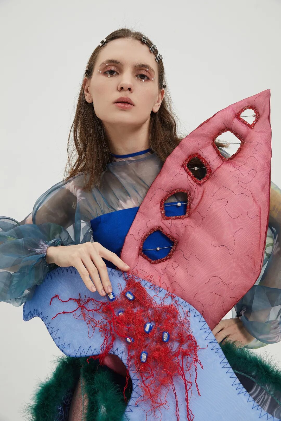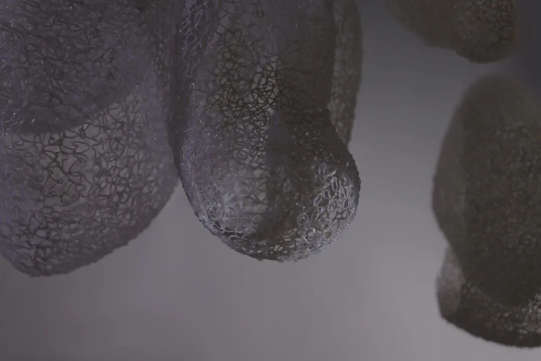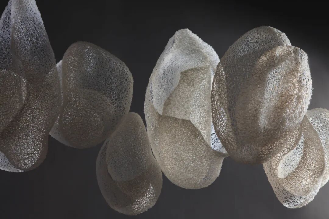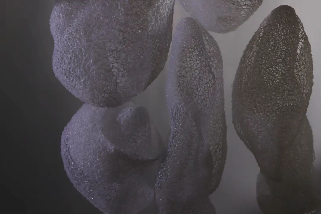 指导老师评语:王瑞同学的毕业设计关注纤维艺术与新技术和新材料的结合。她运用3D打印笔勾勒出生长和绽放的作品形态,不仅体现了纤维艺术的线性语言特征,又引人发现新技术与新材料提供的可能性。作品的灵感来自白化珊瑚,经过从具象模仿到抽象提炼的探索过程,以及挖掘白化珊瑚背后的环保概念,她塑造出自由蓬勃的作品形态既体现了迭代繁生这一主题,又构建了属于个人的设计方法和设计语言。作品以群组的形式进行展示,充分利用作品镂空的结构,在灯光的投射下制造出交错的光影,产生一种虚实相依,灵动有趣的视觉效果。由此可见,在艺术设计与科技相互结合的大趋势下,更重要的是开拓艺术设计者勇于创新和变革的艺术创作观念。