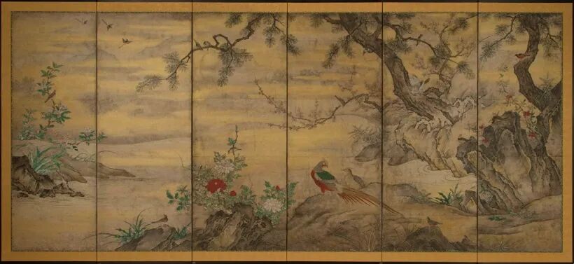 伝狩野元信筆「花鳥図屏風」東京藝術大学蔵の現状模写および装潢