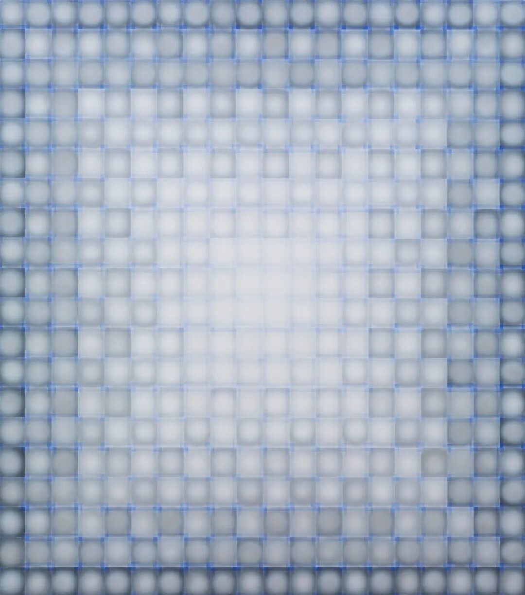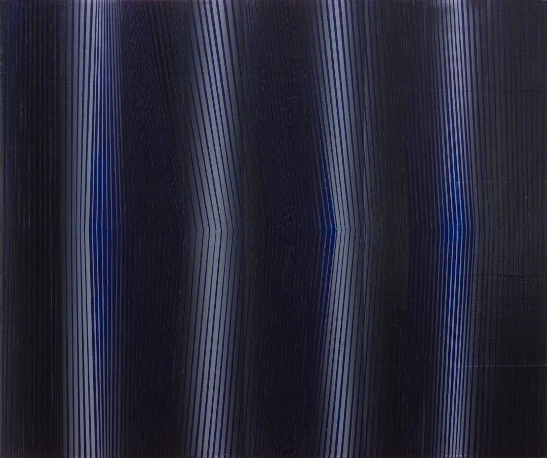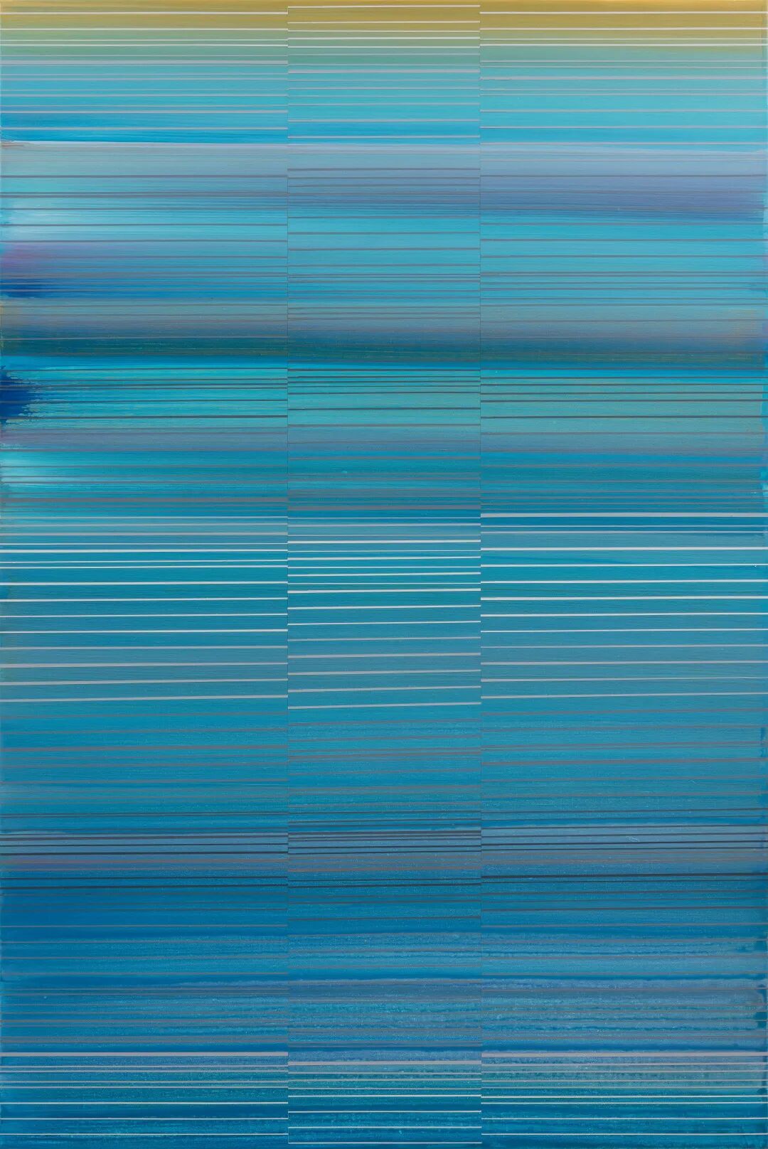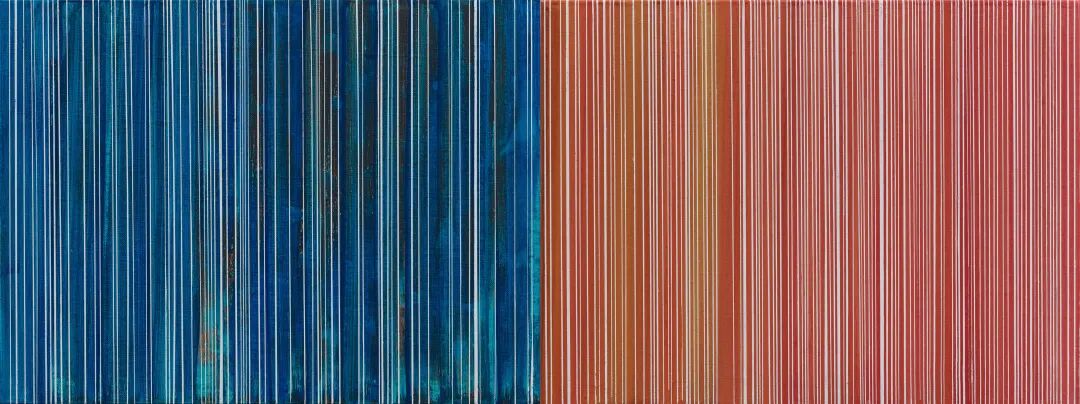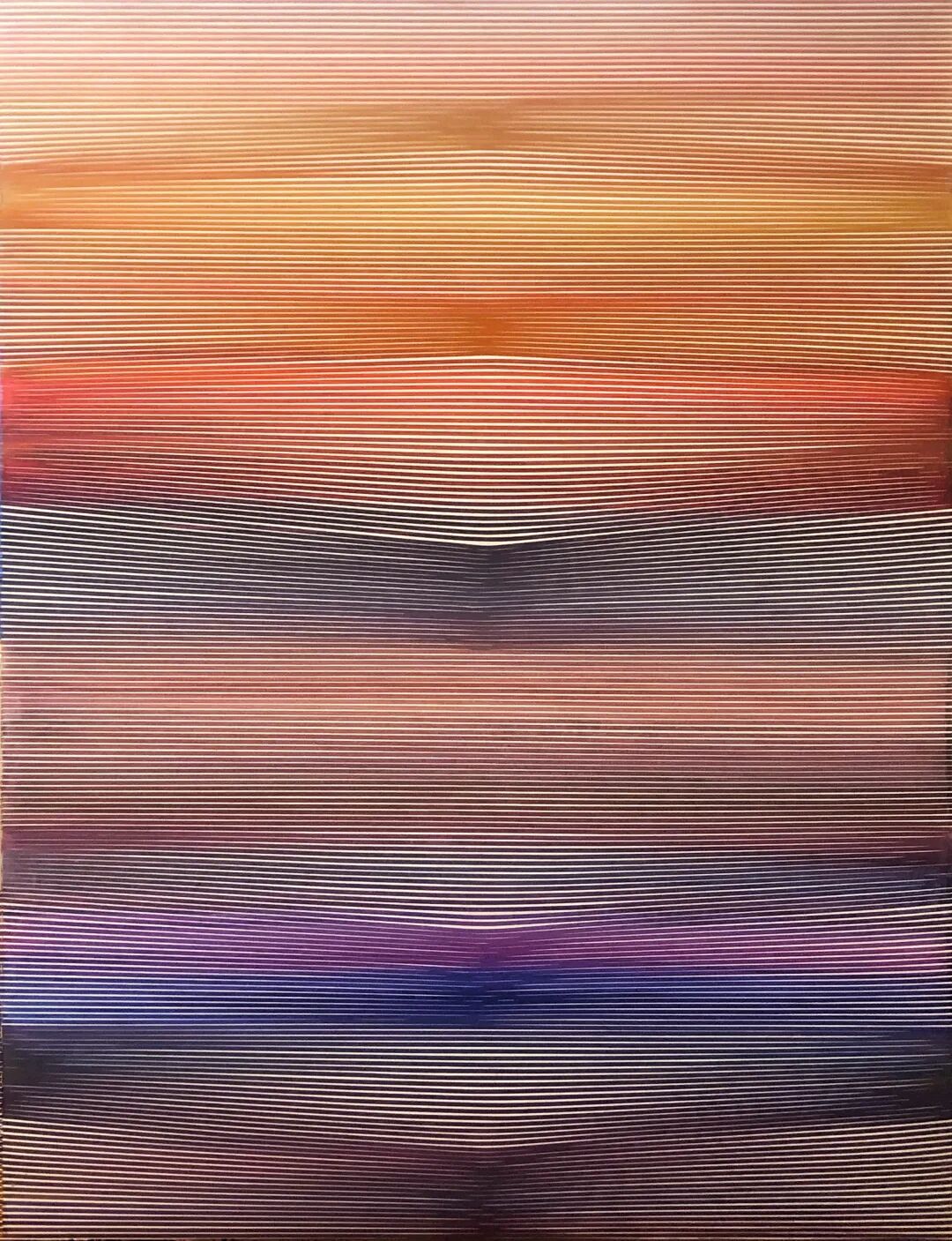 《无微不至》系列作品是以“线”为元素进行创作。线条丰富的变化来自于画面的底层丰富的色彩变化,同时底层的情绪与表层线条的疏密构成新的画面。这是对抽象的理性与感性关系的探索,作品的背后是一种内在的情绪和看待世界的态度。