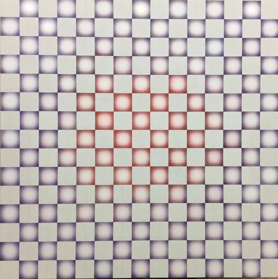 “点”系列和“绝对中心”系列作品是我对绘画本体语言中结构和色彩的初探,不同于写实性绘画对于具体物象的描绘,我试图将我的创作抽离于具体物像,模糊抽象与写实的边界,以形式和色彩的交织作为画面主体,构建平面性绘画的新秩序。突出绘画语言的表现力,画面的节奏和色彩的构成,使创作具有新的视觉神秘感。我的作品在近几年表现为对绘画基本元素的再探讨,在绘画艺术形式百花齐放的今天,对于艺术本体语言的探讨极具意义,它反映了这个时代中个体对于艺术世界的实验,反映了艺术家对于历史的审视和对未来不确定性的展望。这种怀疑、不确定性的表达,给予艺术更多表达的空间,抽象绘画中空间的转换、多材料的介入更像是艺术家对艺术世界的开拓与猜想。
