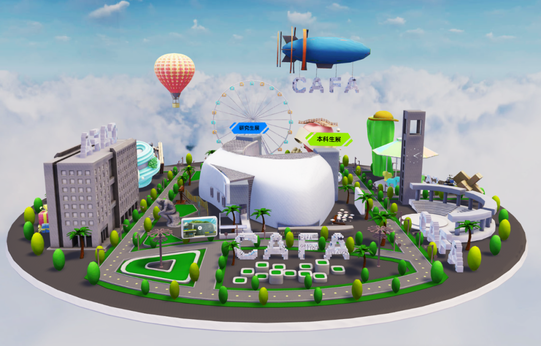 进入主页,首次出现沉浸式3D数字孪生校园,中央美术学院的经典元素得以还原复现。