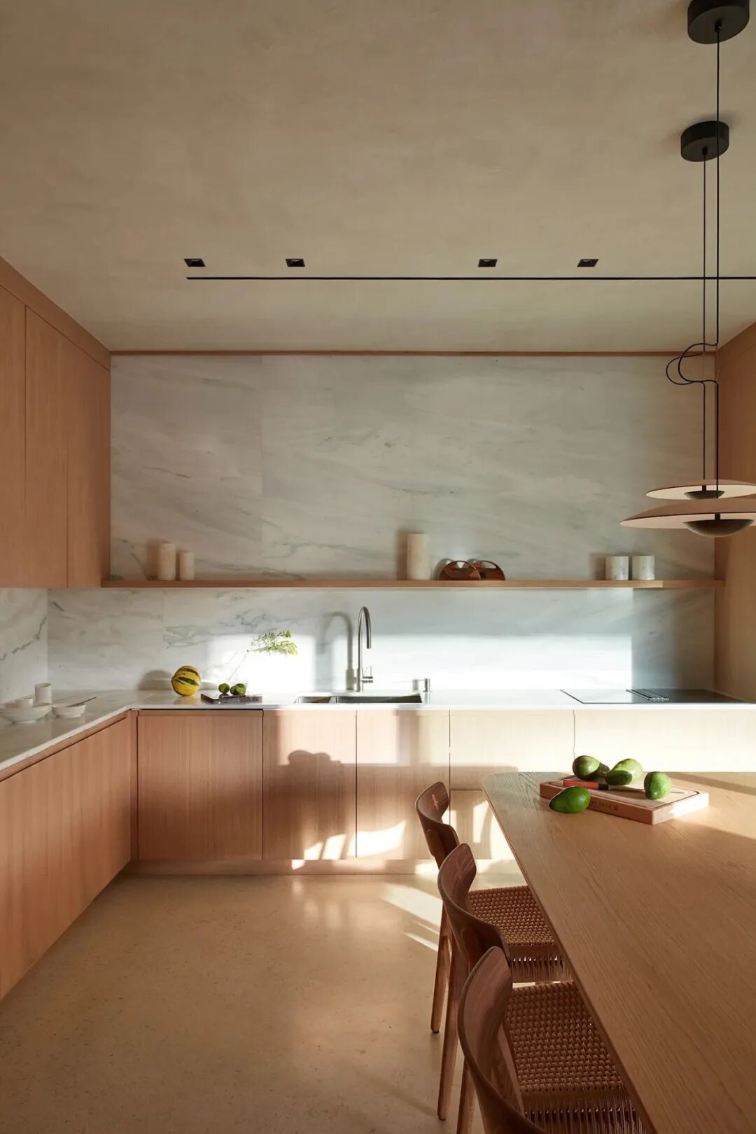 内部构成围绕着干净、温暖、有质感的有机极简主义而构建,这是Block722作品的定义。材料调色板包括用于地板和细木工的深色和浅色木材(主要是橡木)、浅色大理石、金属和柔软的白色墙壁。
