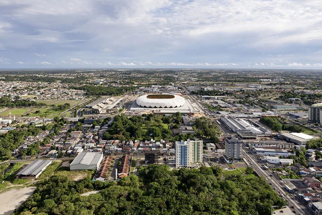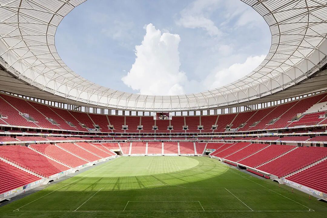 2014年FIFA世界杯主场,做为巴西利亚城市轴线上最大体量的建筑,体育场以纪念碑式的庄严姿态被纳入城市规划的整体之内。体育场碗状看台由一个环形的广场围绕,全部交通连接设置于广场之内,广场的“柱林”之上由屋面覆盖。清晰简洁的设计表达通过极度简化的,几乎保留原初形态的结构元素加以强调。悬挂式屋面由双层结构组成,通过混凝土压力环固定。上层为半透明PTFE膜结构,下层为背面照明的膜结构。