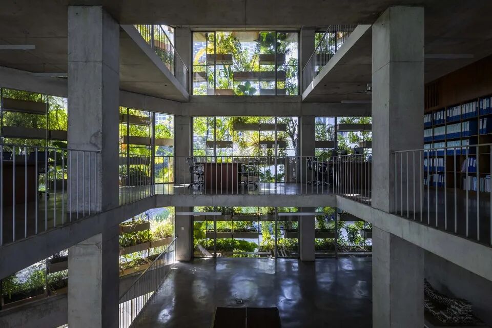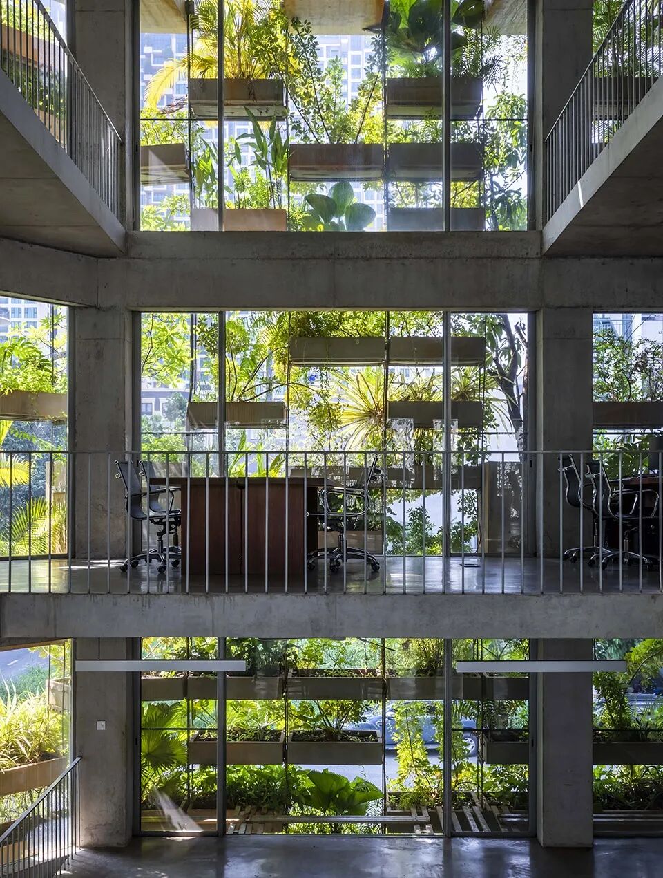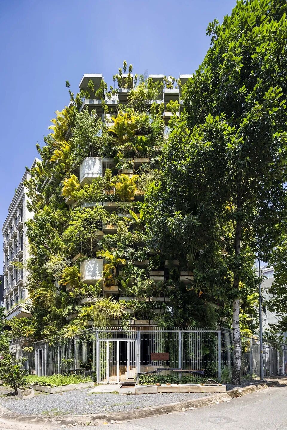 该项目的目标是将绿地还给城市,并促进食品安全生产。该办公项目位于胡志明市的一个新开发区,展示了垂直城市农业的可能性。其外立面由悬挂着各种当地植被的种植箱组成,这样的设计使它们能够获取充足的阳光。这种绿色方法将以最低的能源消耗提供安全的食物和舒适的环境,并为城市可持续未来做出贡献。
