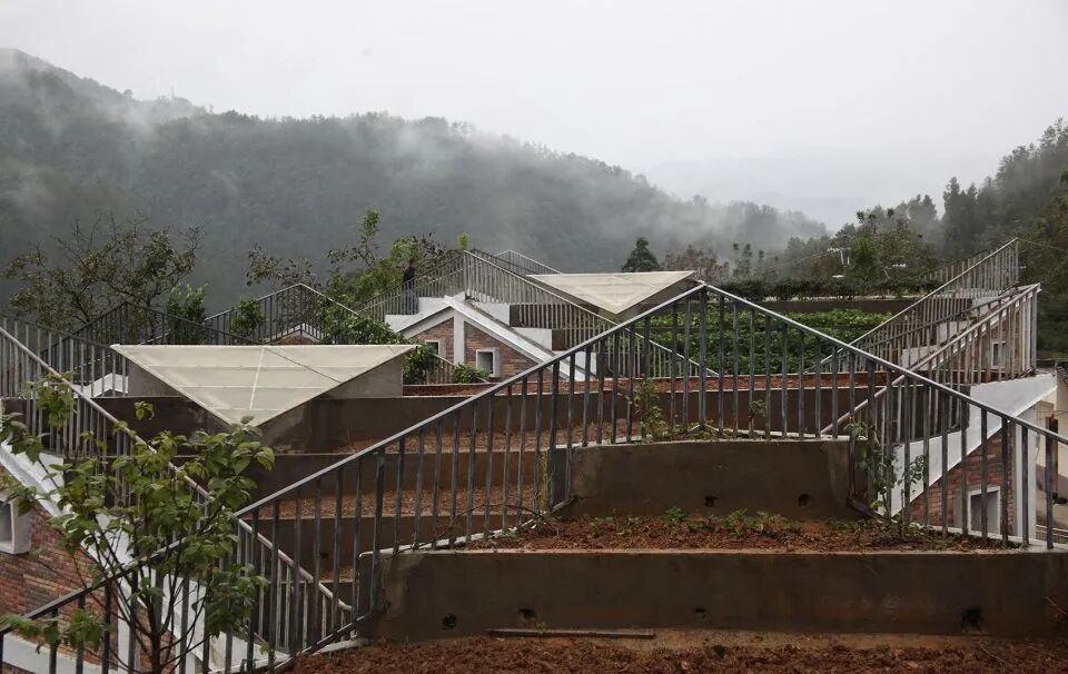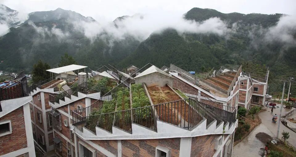 设计通过垂直的内庭院提高了室内采光和通风坏境,并为雨水收集提供通道。设计同时也考虑到了芦苇湿地净化废水和村民合作社饲养家畜等。通过将农村生产生活的不同环节连接成一个生态循环,提高了人们对环境的关心,将这个村子转变为周围的榜样。因为当地适合建房的土地有限,金台村的设计将城市的密集居住模式结合到乡村的环境里,屋顶为农户进行自给自足的种植提供场地,而地面层的开放空间则允许他们开展简单的家庭作坊。这个项目一方面试图保护村庄的共同利益,另一方面为反思现代乡村景观提供了契机。
