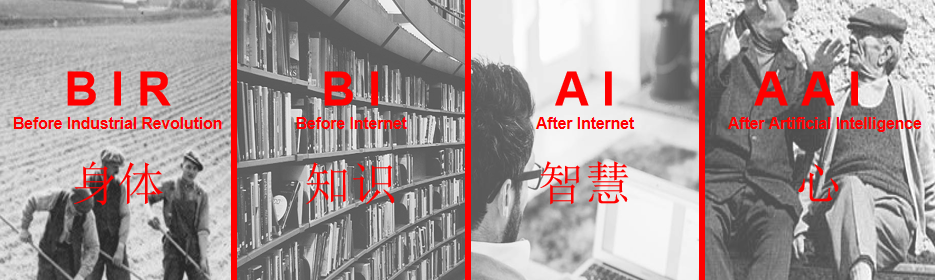 在工业革命时代之前没有大型的机器,都是用自己的身体产生价值,因此那个时代身体是人类价值所在。而工业革命时代之后、还没有到互联网时代的时候,身体被机器替代了,因为机器可以更好地工作,那么这时候人类的知识变成了人的价值。到了互联网出现,因为互联网里面有大量的知识,这个量肯定会超过人类拥有的知识量,这时候人类价值的位置又发生了一些变化,这时候就变成了智慧。