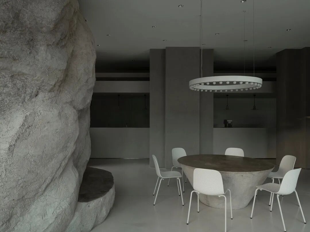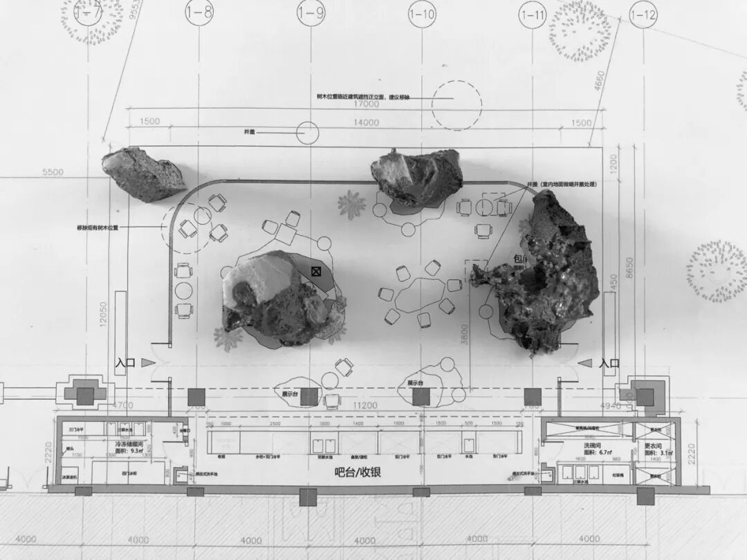 B.L.U.E.设计的味从山海新店:用几块自然形态的山石支撑起一片屋檐