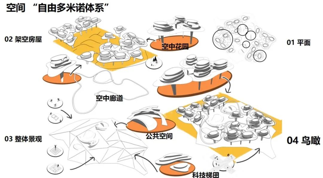 空间 “自由多米诺体系”空间趣味性强烈平衡景观与建筑的高差关系感官上的形式感。从城市尺度的方面着手,随着城市化的进程。和谐人、自然的关系实现空间与感官的相互成就。