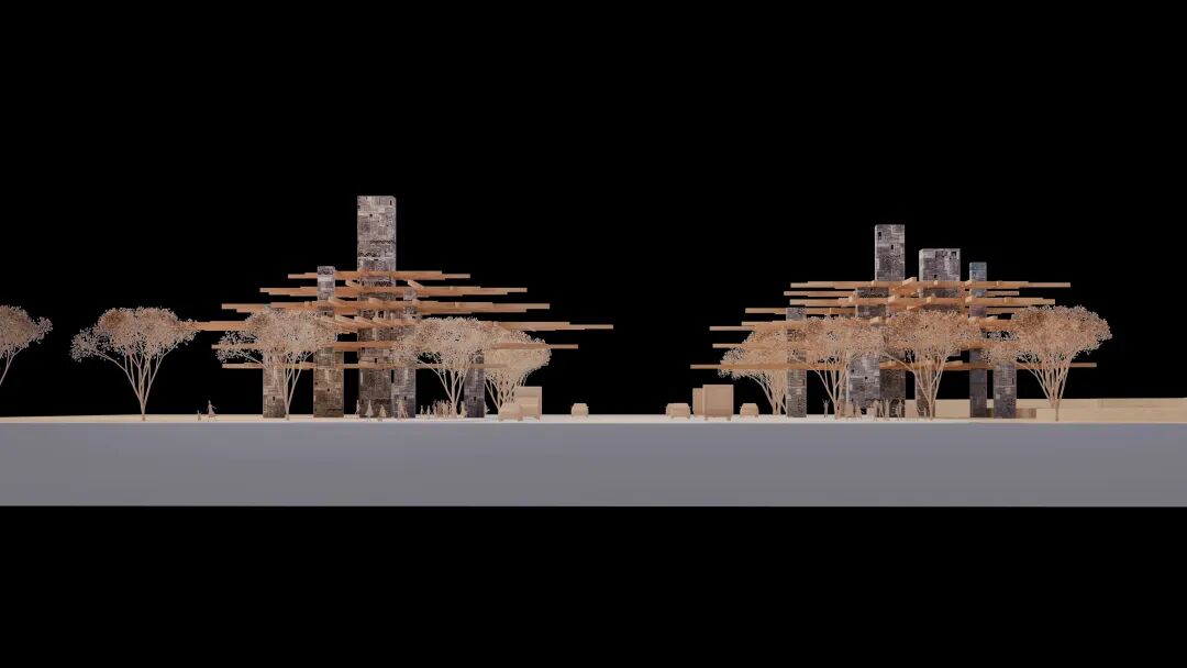 贵州人口少数民族居多,其中苗族在历史中一直对银饰有特别的情感。银的质地偏软,利于雕琢。利用传统“图腾”——凤冠、瓦片等元素,包裹立柱表面并丰富立柱的细节质感。在表现美观的同时,兼具地域文化特色,在冰冷的外衣下体现温暖的民族情节。